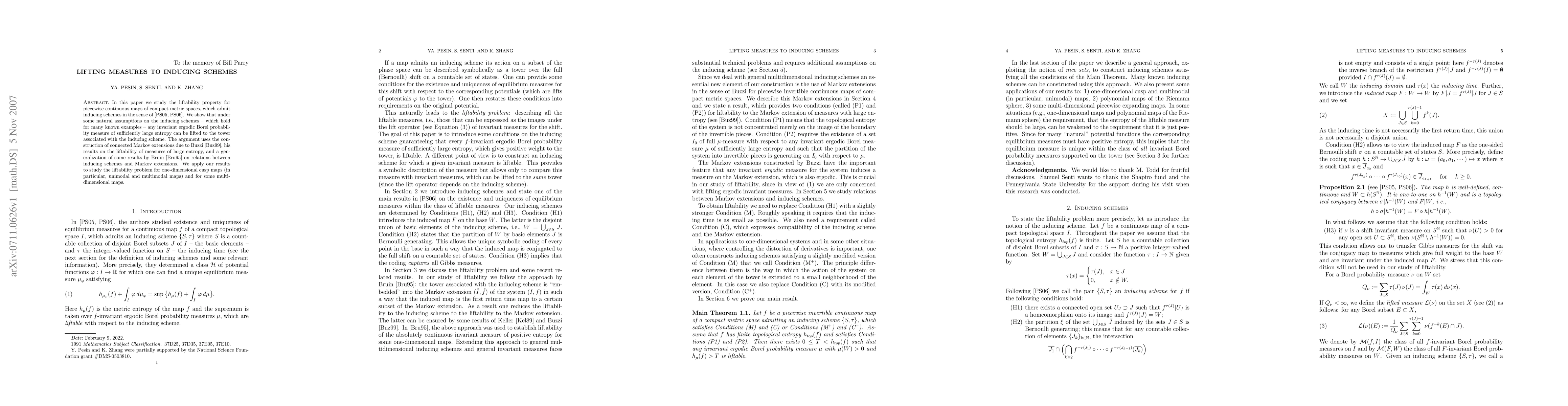 This paper investigates the liftability of invariant ergodic Borel probability measures for piecewise continuous maps of compact metric spaces that possess inducing schemes. It demonstrates that under certain conditions, measures with sufficiently large entropy can be lifted to towers associated with these schemes, utilizing constructions from connected Markov extensions and results on liftability of high-entropy measures.