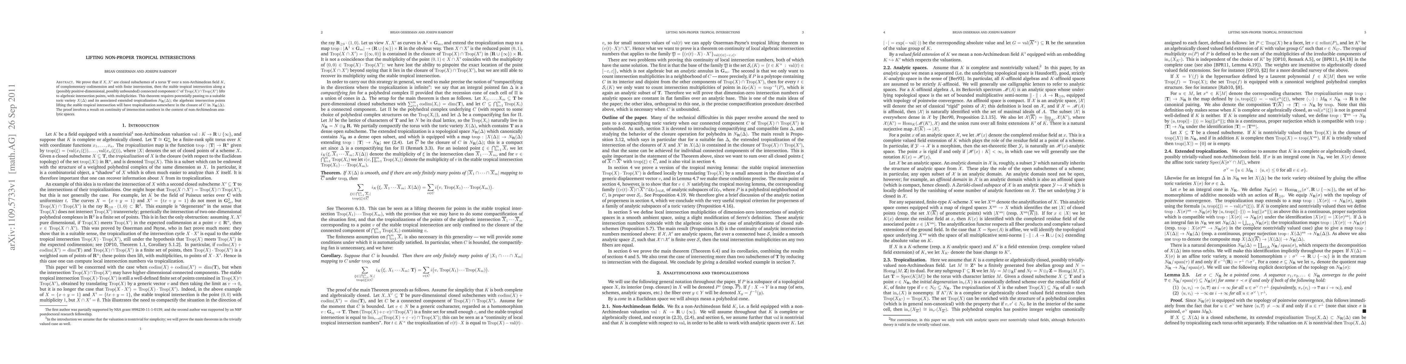We prove that if X, X' are closed subschemes of a torus T over a non-Archimedean field K, of complementary codimension and with finite intersection, then the stable tropical intersection along a (possibly positive-dimensional, possibly unbounded) connected component C of Trop(X) \cap Trop(X') lifts to algebraic intersection points, with multiplicities. This theorem requires potentially passing to a suitable toric variety X(\Delta) and its associated extended tropicalization N_R(\Delta); the algebraic intersection points lifting the stable tropical intersection will have tropicalization somewhere in the closure of C in N_R(\Delta). The proof involves a result on continuity of intersection numbers in the context of non-Archimedean analytic spaces.
