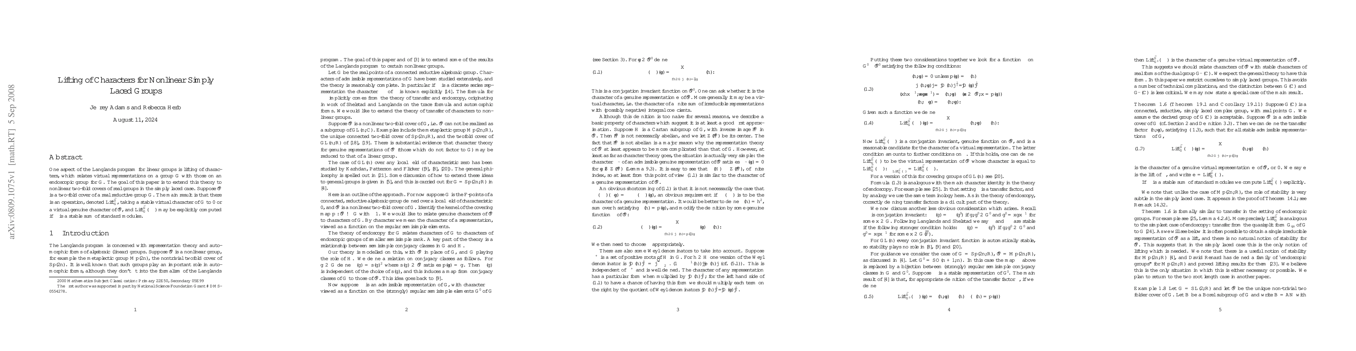 This paper extends the theory of character lifting from linear to nonlinear simply laced groups, specifically focusing on two-fold covers. It introduces an operation $\Lift_G^{\tG}$ that maps stable virtual characters of $G$ to virtual genuine characters of $\tG$, with explicit computation possible for stable sums of standard modules.