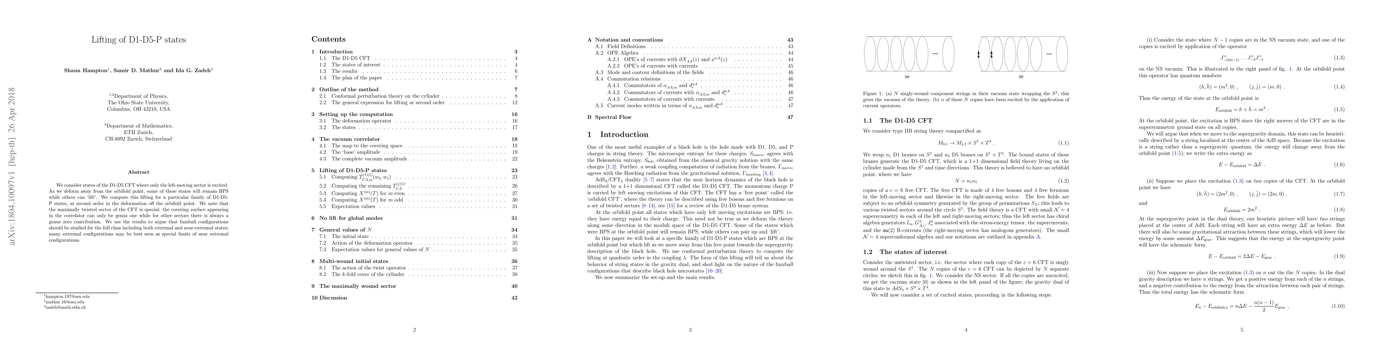This paper examines D1-D5 CFT states with left-moving excitations, analyzing how some states remain BPS while others "lift" under deformations. It computes lifting for a specific D1-D5-P state family at second-order deformation, noting the unique genus one surface for the maximally twisted sector.