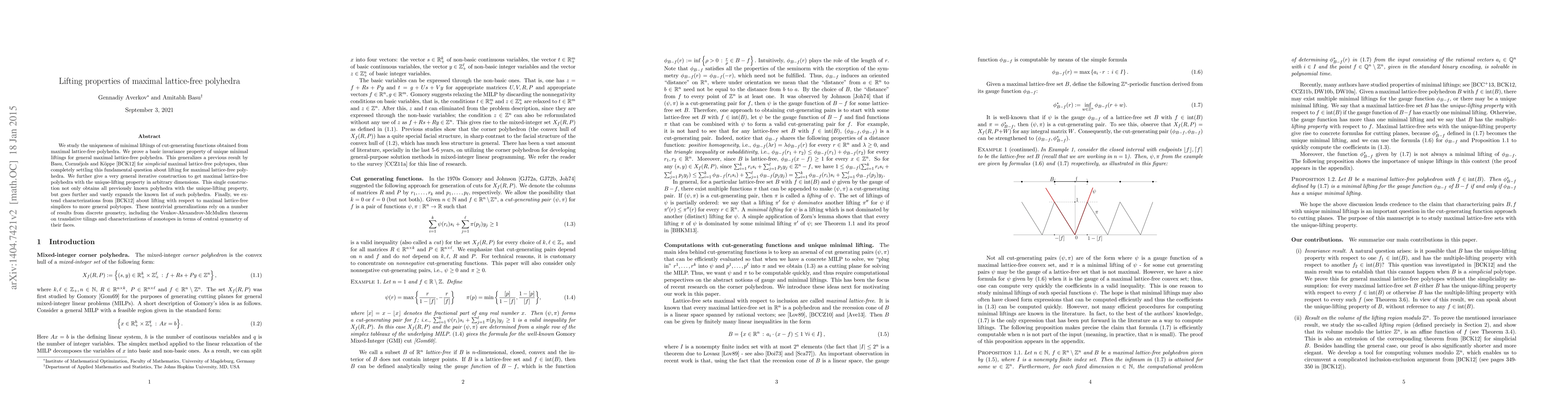 We study the uniqueness of minimal liftings of cut-generating functions obtained from maximal lattice-free polyhedra. We prove a basic invariance property of unique minimal liftings for general maximal lattice-free polyhedra. This generalizes a previous result by Basu, Cornu\'ejols and K\"oppe~\cite{bcm} for {\em simplicial} maximal lattice-free polytopes, thus completely settling this fundamental question about lifting for maximal lattice-free polyhedra. We further give a very general iterative construction to get maximal lattice-free polyhedra with the unique-lifting property in arbitrary dimensions. This single construction not only obtains all previously known polyhedra with the unique-lifting property, but goes further and vastly expands the known list of such polyhedra. Finally, we extend characterizations from~\cite{bcm} about lifting with respect to maximal lattice-free simplices to more general polytopes. These nontrivial generalizations rely on a number of results from discrete geometry, including the Venkov-Alexandrov-McMullen theorem on translative tilings and characterizations of zonotopes in terms of central symmetry of their faces.