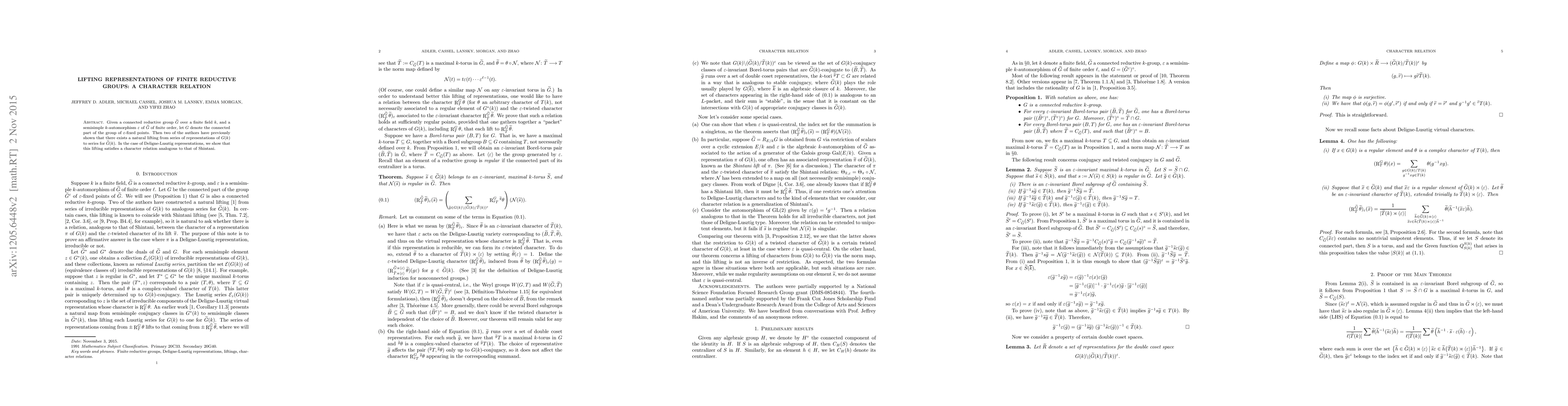 This paper demonstrates a lifting technique from representations of the fixed point group $G$ under a semisimple automorphism $\varepsilon$ of a reductive group $\tilde{G}$ to representations of $\tilde{G}$, showing that it preserves character relations similar to Shintani's relation for Deligne-Lusztig representations.
