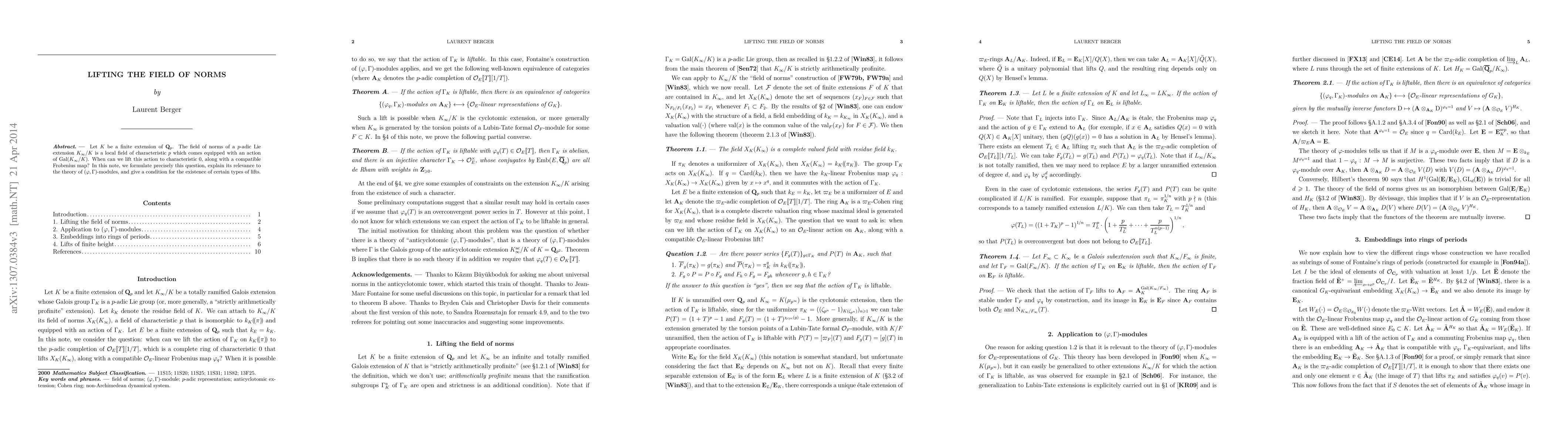 Let K be a finite extension of Q_p. The field of norms of a p-adic Lie extension K_infty/K is a local field of characteristic p which comes equipped with an action of Gal(K_infty/K). When can we lift this action to characteristic 0, along with a compatible Frobenius map? In this note, we formulate precisely this question, explain its relevance to the theory of (phi,Gamma)-modules, and give a condition for the existence of certain types of lifts.