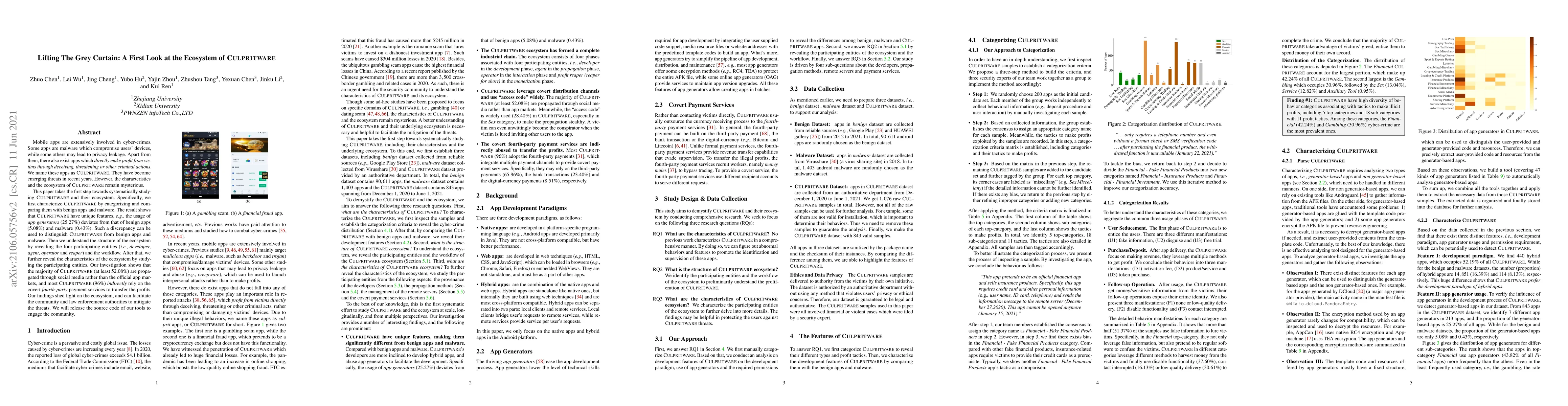 Mobile apps are extensively involved in cyber-crimes. Some apps are malware which compromise users' devices, while some others may lead to privacy leakage. Apart from them, there also exist apps which directly make profit from victims through deceiving, threatening or other criminal actions. We name these apps as CULPRITWARE. They have become emerging threats in recent years. However, the characteristics and the ecosystem of CULPRITWARE remain mysterious. This paper takes the first step towards systematically studying CULPRITWARE and its ecosystem. Specifically, we first characterize CULPRITWARE by categorizing and comparing them with benign apps and malware. The result shows that CULPRITWARE have unique features, e.g., the usage of app generators (25.27%) deviates from that of benign apps (5.08%) and malware (0.43%). Such a discrepancy can be used to distinguish CULPRITWARE from benign apps and malware. Then we understand the structure of the ecosystem by revealing the four participating entities (i.e., developer, agent, operator and reaper) and the workflow. After that, we further reveal the characteristics of the ecosystem by studying the participating entities. Our investigation shows that the majority of CULPRITWARE (at least 52.08%) are propagated through social media rather than the official app markets, and most CULPRITWARE (96%) indirectly rely on the covert fourth-party payment services to transfer the profits. Our findings shed light on the ecosystem, and can facilitate the community and law enforcement authorities to mitigate the threats. We will release the source code of our tools to engage the community.