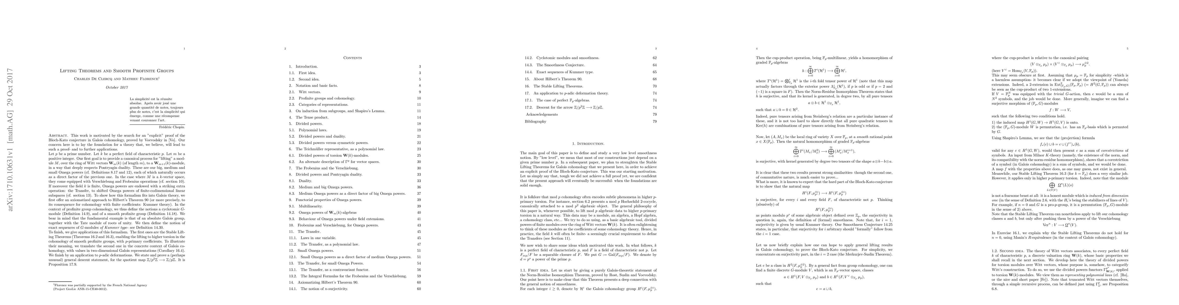 This paper lays the groundwork for an "explicit" proof of the Bloch-Kato conjecture by developing a theory for lifting modules over Witt vectors, deeply respecting Pontryagin duality, and exploring applications in Galois cohomology, particularly for smooth profinite groups and cyclotomic modules. It culminates in the Stable Lifting Theorems and a general descent statement for p-adic deformations.