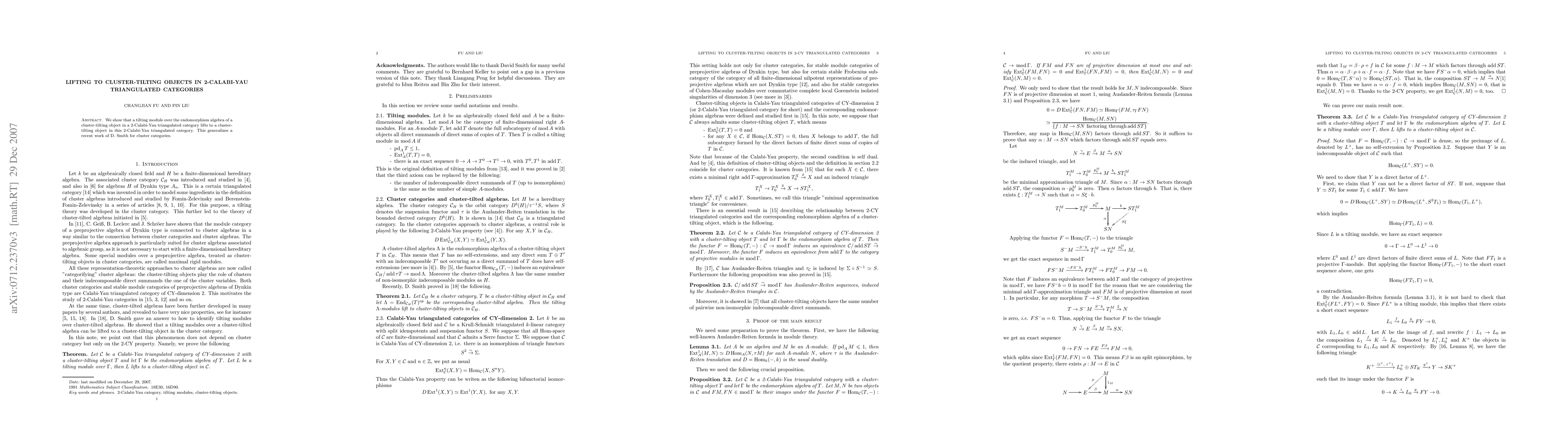 Summary: The paper demonstrates that tilting modules over the endomorphism algebra of a cluster-tilting object in a 2-Calabi-Yau triangulated category can be lifted to cluster-tilting objects within the same category, extending prior results by D. Smith on cluster categories.