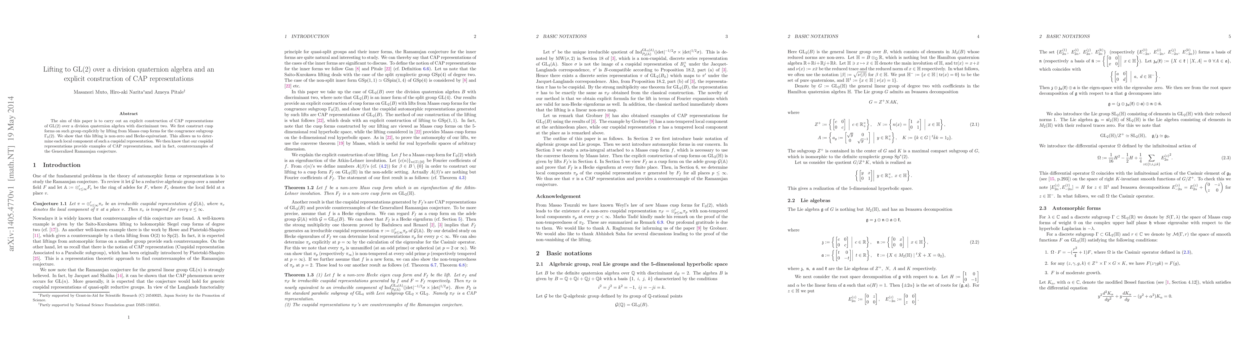 This paper constructs CAP representations of GL(2) over a division quaternion algebra with discriminant two by lifting Maass cusp forms for a congruence subgroup of level 2. The lifting is shown to be non-zero and Hecke-equivariant, leading to counterexamples of the Generalized Ramanujan conjecture.