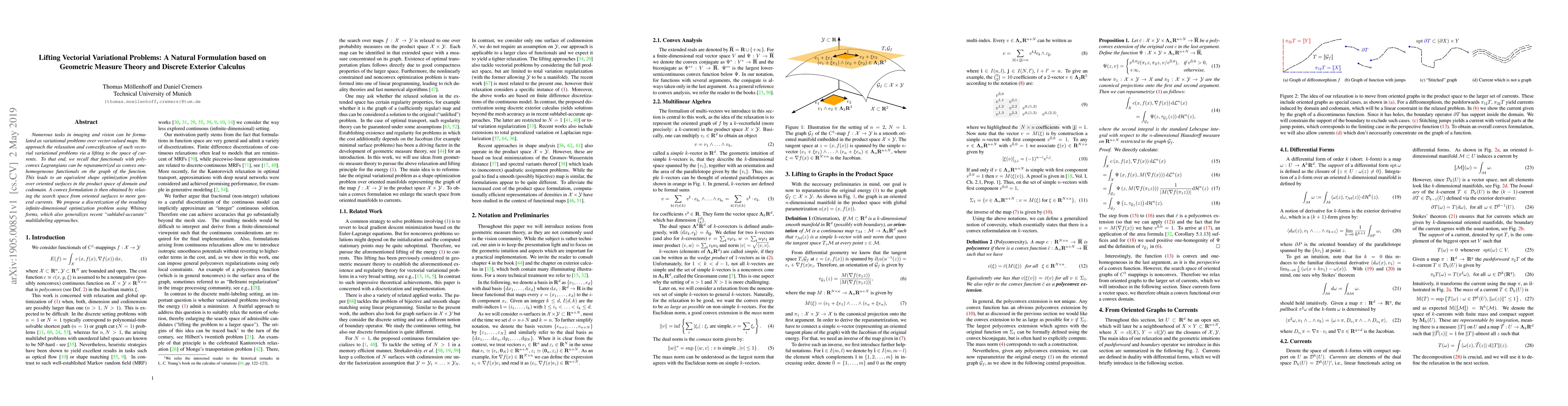 This paper proposes a novel formulation for vectorial variational problems in imaging and vision by lifting them to the space of currents, leveraging geometric measure theory and discrete exterior calculus. It achieves convexification through the use of Whitney forms, providing a generalized approach to multilabeling.