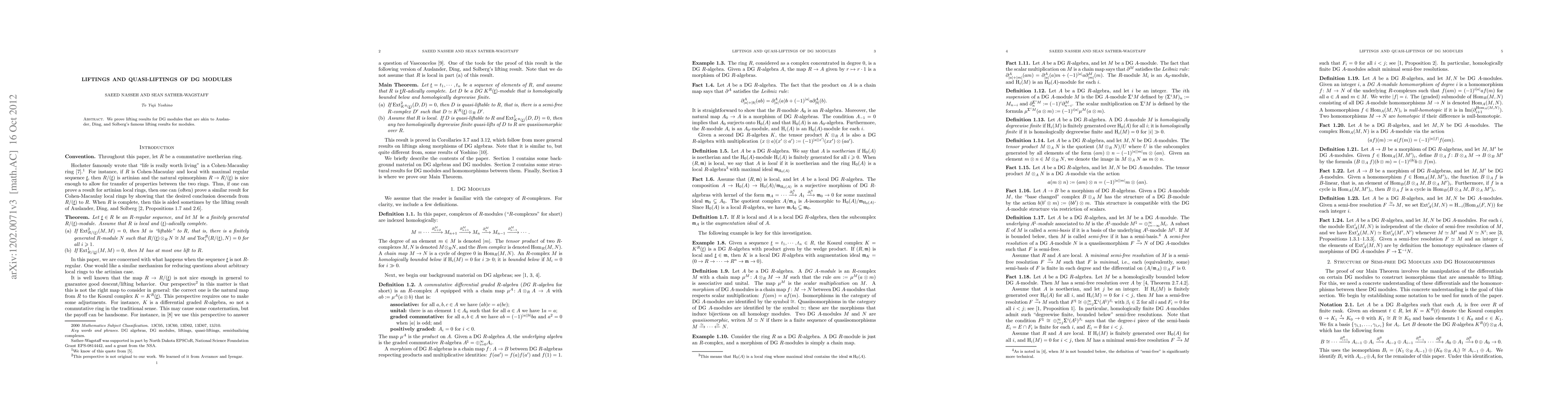 Summary: This paper establishes lifting results for DG modules, extending the classical lifting theorems of Auslander, Ding, and Solberg to the context of differential graded modules. The results provide a robust framework for understanding module behavior in DG settings.