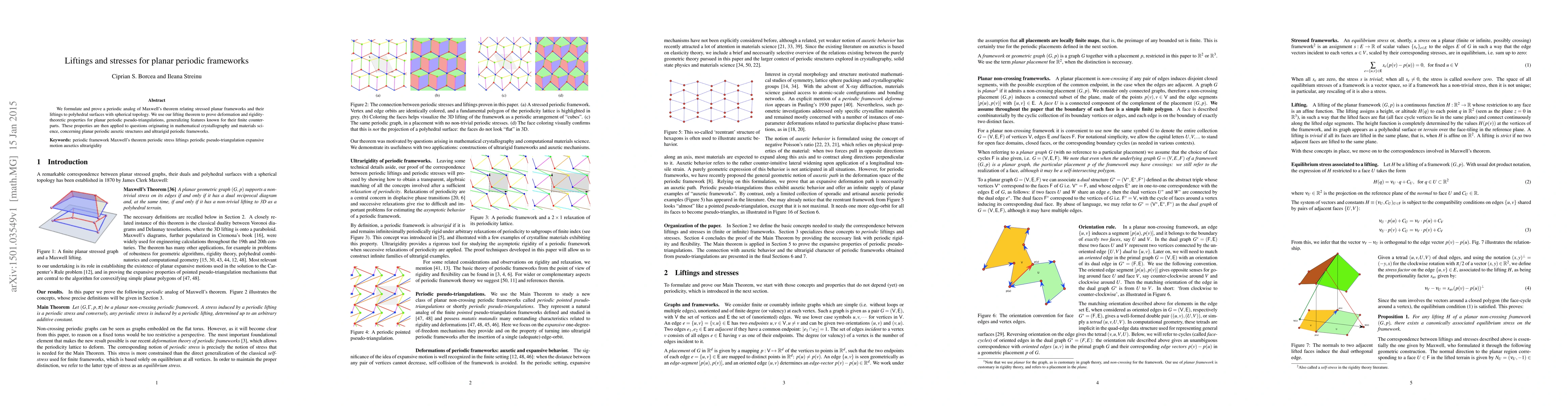 This paper formulates and proves a periodic version of Maxwell's theorem for stressed planar frameworks, establishing connections between liftings and polyhedral surfaces. It applies these results to study deformation and rigidity properties of periodic pseudo-triangulations, with implications for mathematical crystallography and materials science.