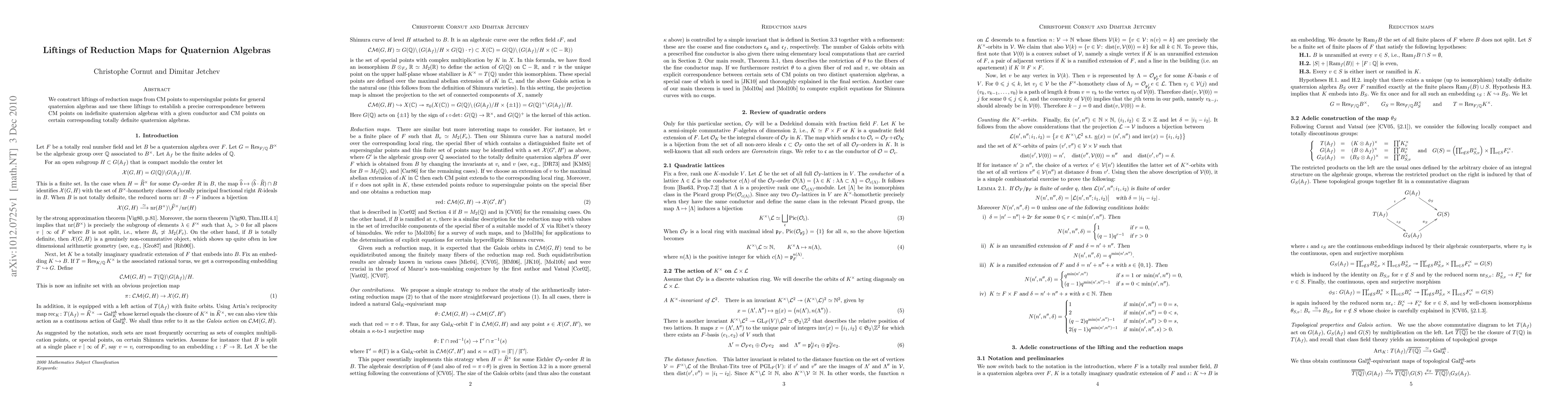 This paper constructs liftings of reduction maps from complex multiplication (CM) points to supersingular points for general quaternion algebras, establishing a precise correspondence between CM points on indefinite quaternion algebras and those on corresponding totally definite quaternion algebras with a specified conductor.