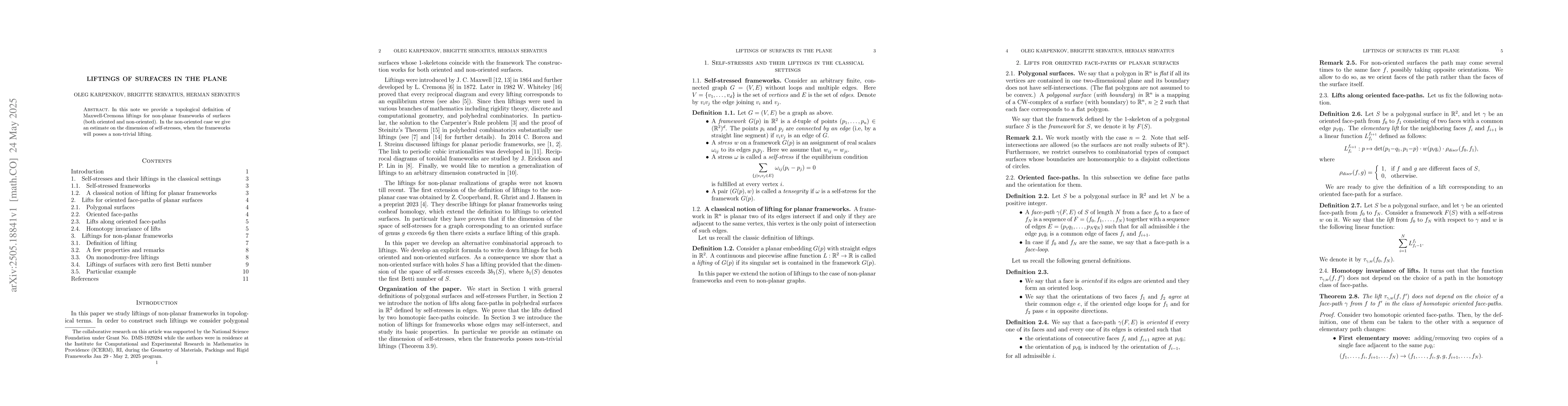 Researchers provide a topological definition for lifting surfaces in non-planar frameworks, exploring the conditions under which self-stresses can exist.