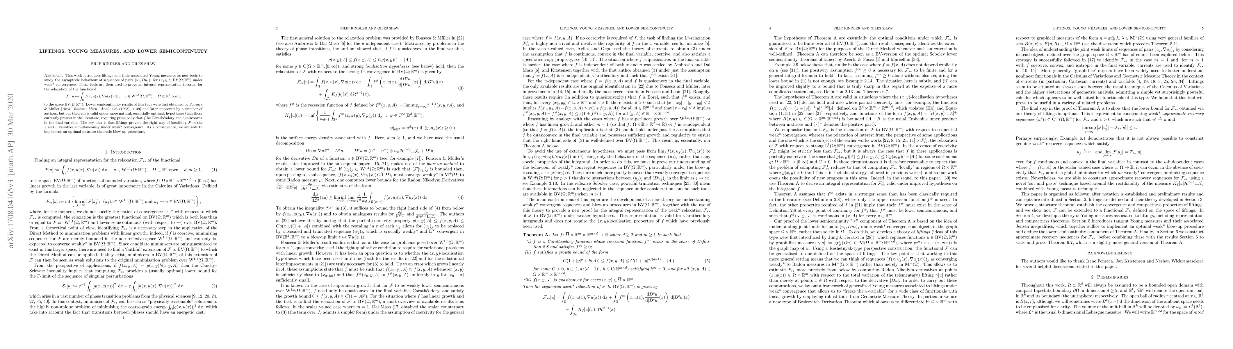 This work introduces liftings and their associated Young measures as new tools to study the asymptotic behaviour of sequences of pairs $(u_j,Du_j)j$ for $(u_j)_j \in \mathrm{BV}(\Omega;\mathbb{R}^m)$ under weak* convergence. These tools are then used to prove an integral representation theorem for the relaxation of the functional \[ \mathcal{F}\colon u\to\int_\Omega f(x,u(x),\nabla u(x)) \;\mathrm{dx},\quad u\in\mathrm{W}^{1,1}({\Omega};\mathbb{R}^m),\quad {\Omega}\in\mathbb{R}^d\text{ open}, \] to the space $\mathrm{BV}(\Omega; \mathbb{R}^m)$. Lower semicontinuity results of this type were first obtained by Fonseca and M\"uller [Arch. Ration. Mech. Anal. 123 (1993), 1-49] and later improved by a number of authors, but our theorem is valid under more natural, essentially optimal, hypotheses than those currently present in the literature, requiring principally that $f$ be Carath\'eodory and quasiconvex in the final variable. The key idea is that liftings provide the right way of localising $\mathcal{F}$ in the $x$ and $u$ variables simultaneously under weak* convergence. As a consequence, we are able to implement an optimal measure-theoretic blow-up procedure.