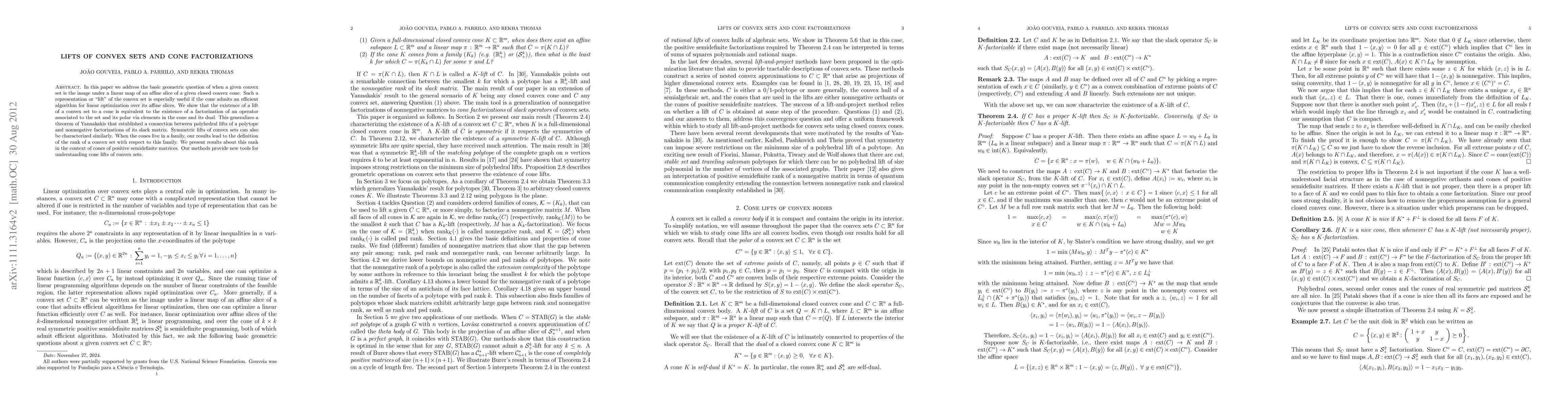 This paper investigates when a convex set can be lifted to an affine slice of a closed convex cone via a linear map, establishing a connection between such lifts and factorizations of associated operators. The results generalize Yannakakis's theorem on polyhedral lifts and introduce a rank for convex sets relative to a family of cones, with applications to positive semidefinite matrices.