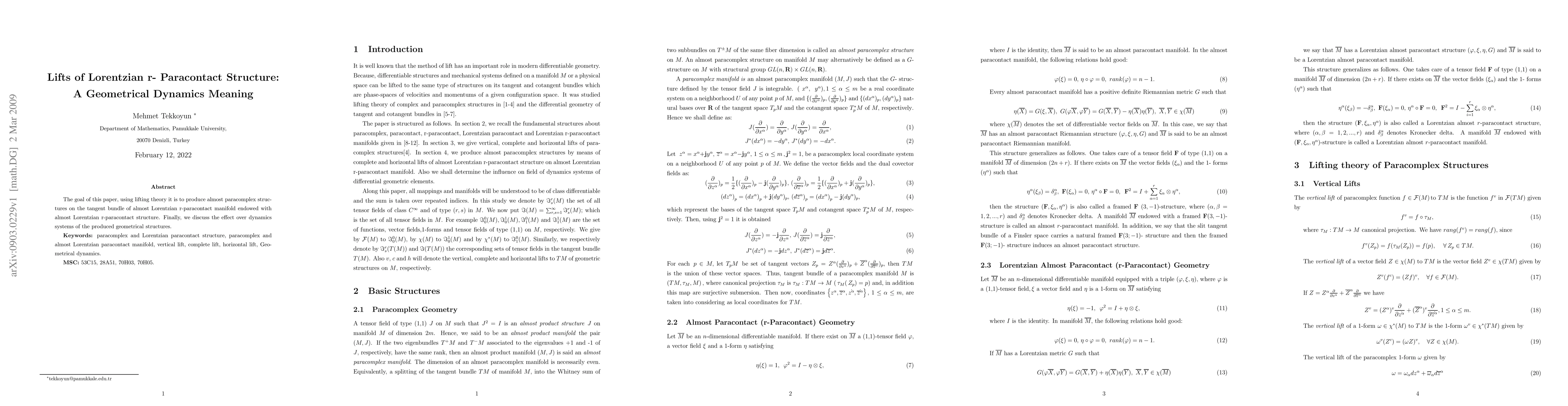 This paper employs lifting theory to construct almost paracomplex structures on the tangent bundle of an almost Lorentzian r-paracontact manifold, and explores the impact of these geometrical structures on dynamical systems.