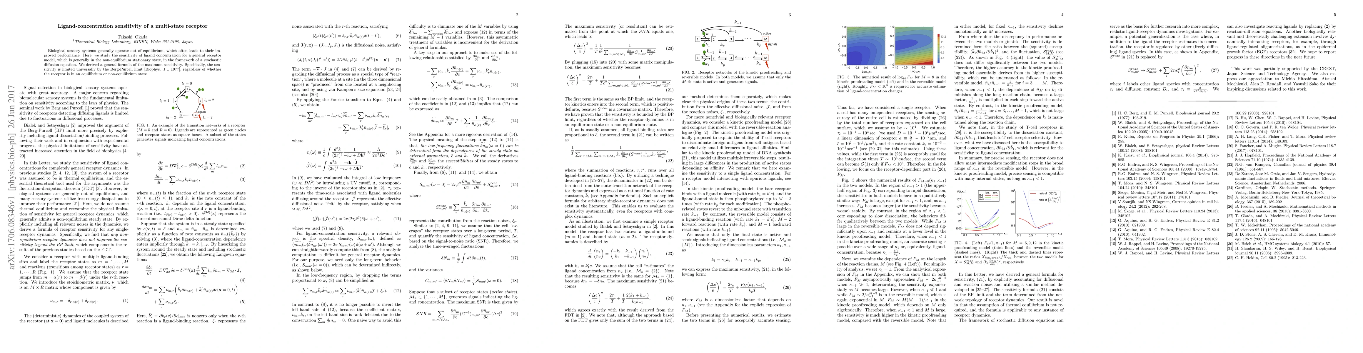 Biological sensory systems generally operate out of equilibrium, which often leads to their improved performance. Here, we study the sensitivity of ligand concentration for a general receptor model, which is generally in the non-equilibrium stationary state, in the framework of a stochastic diffusion equation. We derived a general formula of the maximum sensitivity. Specifically, the sensitivity is limited universally by the Berg-Purcell limit [Biophys. J ., 1977], regardless of whether the receptor is in an equilibrium or non-equilibrium state.