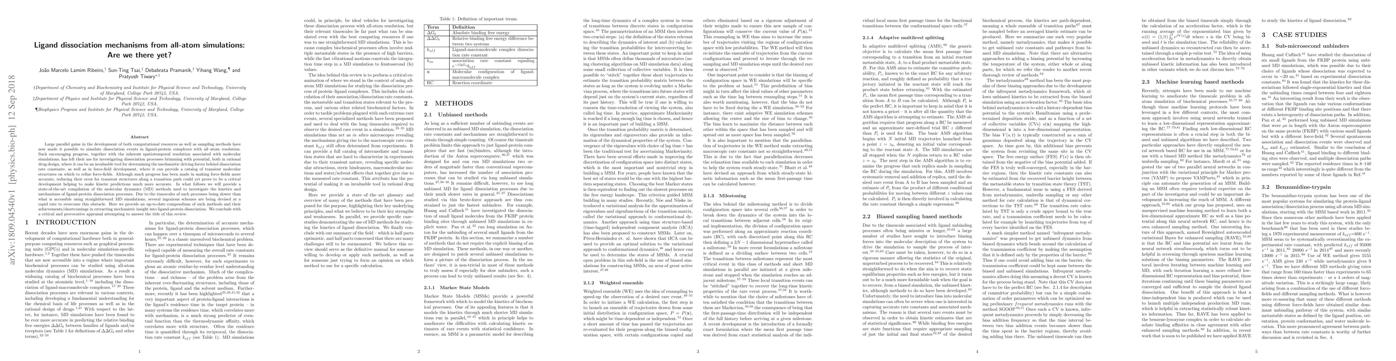 This paper reviews advancements in all-atom molecular dynamics simulations for studying ligand dissociation from protein complexes, highlighting the potential of these methods in drug design and force-field development. It compiles current state-of-the-art methods for overcoming the slow timescales of dissociation processes and critically assesses their achievements and limitations.