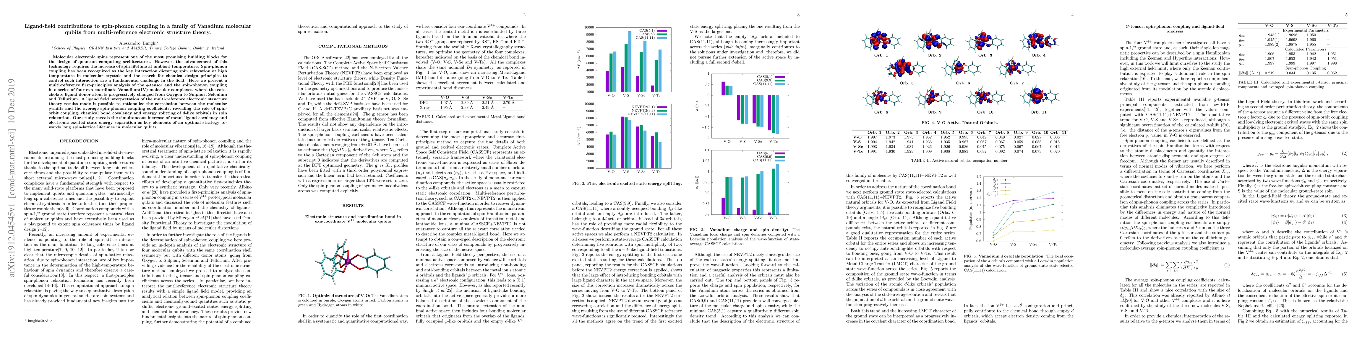 Molecular electronic spins represent one of the most promising building blocks for the design of quantum computing architectures. However, the advancement of this technology requires the increase of spin lifetime at ambient temperature. Spin-phonon coupling has been recognized as the key interaction dictating spin relaxation at high temperature in molecular crystals and the search for chemical-design principles to control such interaction are a fundamental challenge in the field. Here we present a multi-reference first-principles analysis of the g-tensor and the spin-phonon coupling in a series of four exa-coordinate Vanadium(IV) molecular complexes, where the catecholate ligand donor atom is progressively changed from Oxygen to Sulphur, Selenium and Tellurium. A ligand field interpretation of the multi-reference electronic structure theory results made it possible to rationalize the correlation between the molecular g-shifts and the average spin-phonon coupling coefficients, revealing the role of spin-orbit coupling, chemical bond covalency and energy splitting of d-like orbitals in spin relaxation. Our study reveals the simultaneous increase of metal-ligand covalency and electronic excited state energy separation as key elements of an optimal strategy towards long spin-lattice lifetimes in molecular qubits.