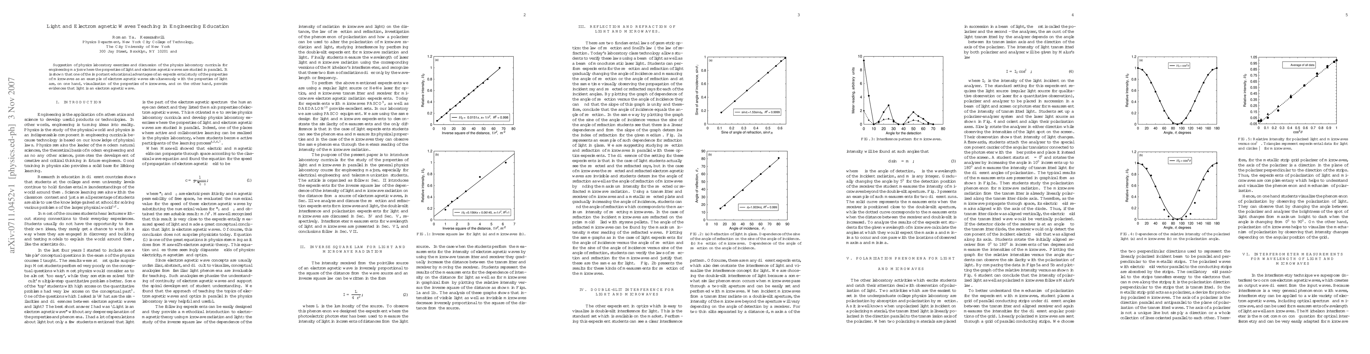 Suggestion of physics laboratory exercises and discussion of the physics laboratory curricula for engineering majors where the properties of light and electromagnetic waves are studied in parallel. It is shown that one of the important educational advantages of an experimental study of the properties of microwaves as an example of electromagnetic waves simultaneously with the properties of light are, on one hand, visualization of the properties of microwaves, and on the other hand, provide evidences that light is an electromagnetic wave.