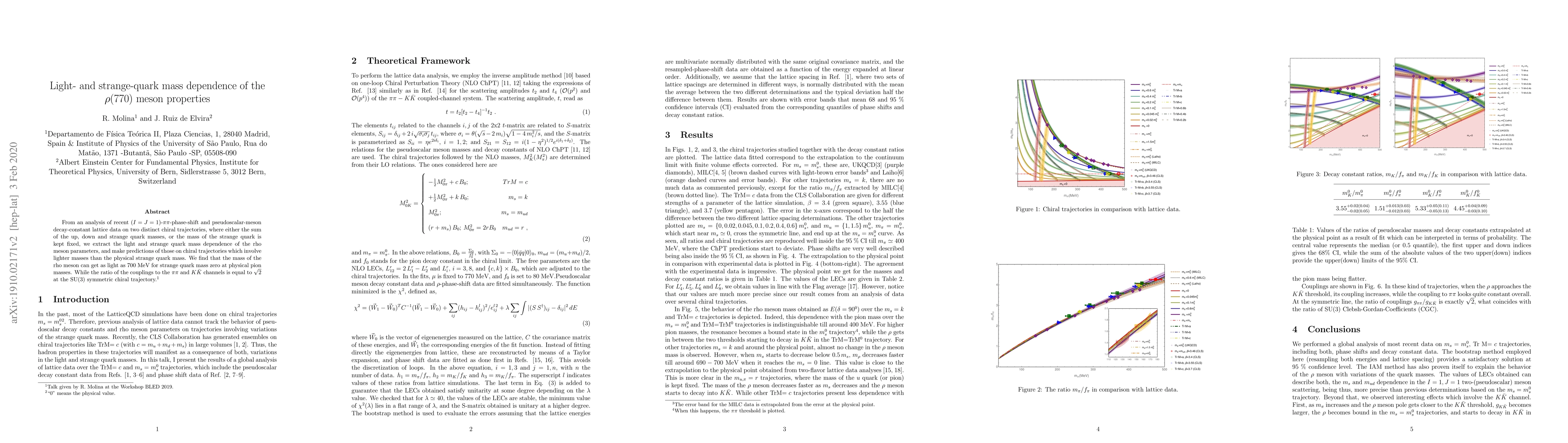 Researchers analyzed lattice data to study how strange-quark mass affects the properties of the rho meson, finding that its mass can drop to 700 MeV for a certain set of conditions.