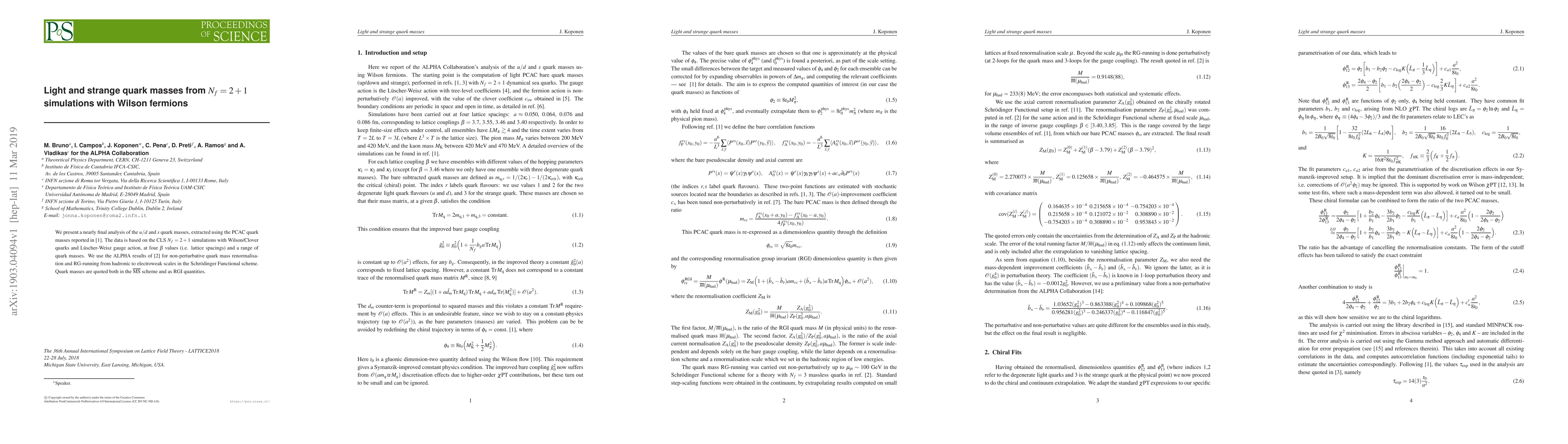 We present a nearly final analysis of the $u/d$ and $s$ quark masses, extracted using the PCAC quark masses reported in [PRD 95 (2017) 074504]. The data is based on the CLS $N_f = 2 + 1$ simulations with Wilson/Clover quarks and L\"uscher-Weisz gauge action, at four $\beta$ values (i.e. lattice spacings) and a range of quark masses. We use the ALPHA results of [EPJC 78 (2018) 387] for non-perturbative quark mass renormalisation and RG-running from hadronic to electroweak scales in the Schr\"odinger Functional scheme. Quark masses are quoted both in the $\overline{\rm MS}$ scheme and as RGI quantities.