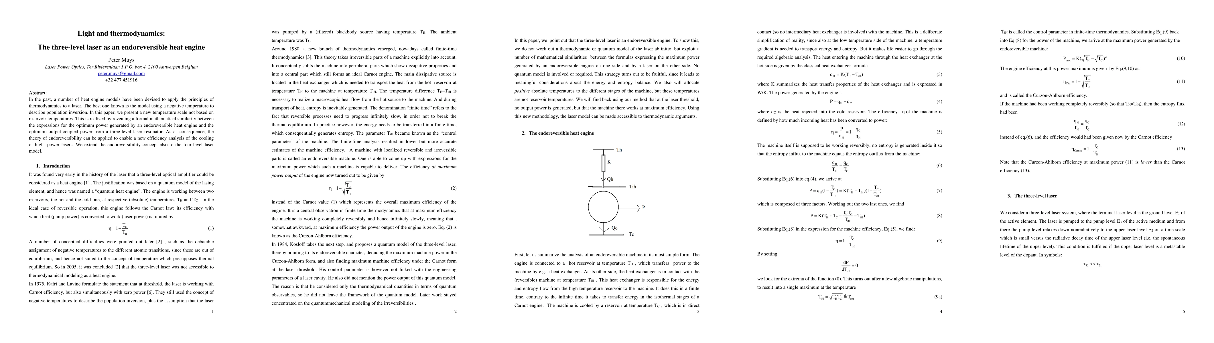 A thermodynamic analysis of laser heat engines was performed using a combination of theoretical models and experimental data.