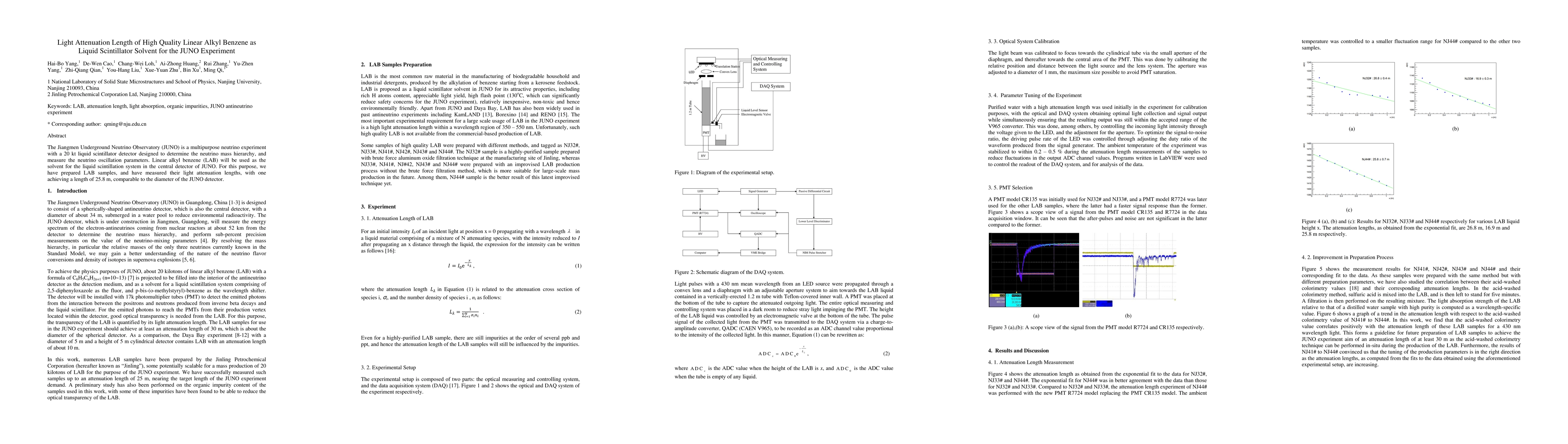 This paper investigates the light attenuation length of high-quality linear alkyl benzene (LAB) used as a solvent in JUNO's liquid scintillator detector, achieving a length of 25.8 m, which is crucial for the experiment's ability to determine neutrino mass hierarchy and oscillation parameters.