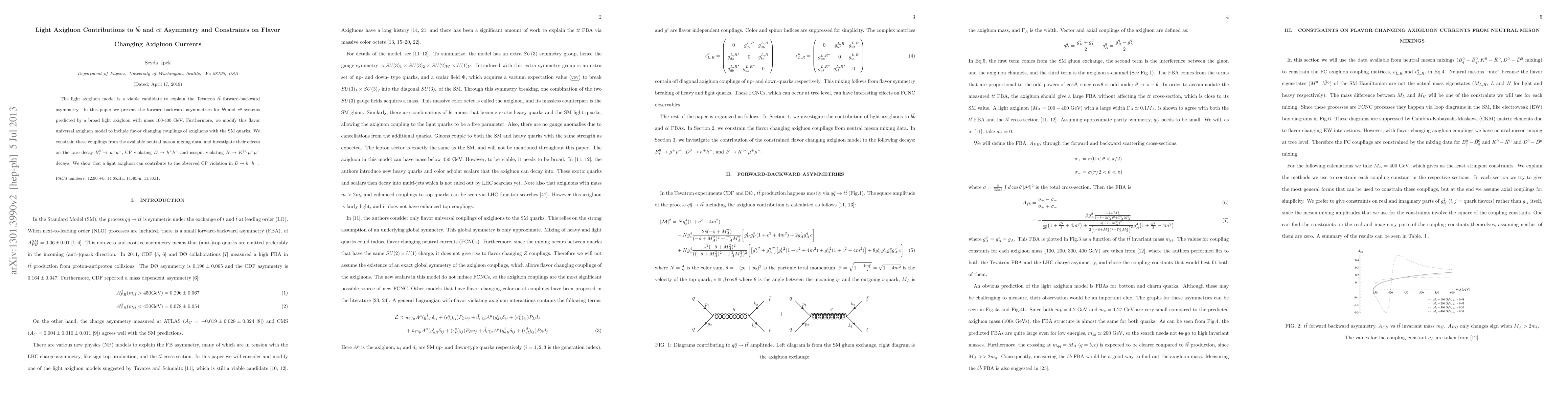 The light axigluon model of Tavares and Schmaltz is a viable candidate to explain the Tevatron t-tbar forward-backward asymmetry. In this paper we present the forward-backward asymmetries for b-bbar and c-cbar systems predicted by the light axigluon. Furthermore, we modify this model to include flavor changing couplings of axigluons with the SM quarks. We constrain these couplings from the available neutral meson mixing data, and investigate their effects on the rare decay B^0_s -> mu^+ mu^-, CP violating D -> h^+ h^- and isospin violating B -> K^(*) mu^+ mu^- decays. We show that a light axigluon can contribute to the observed CP violation in D -> h^+ h^- decays.