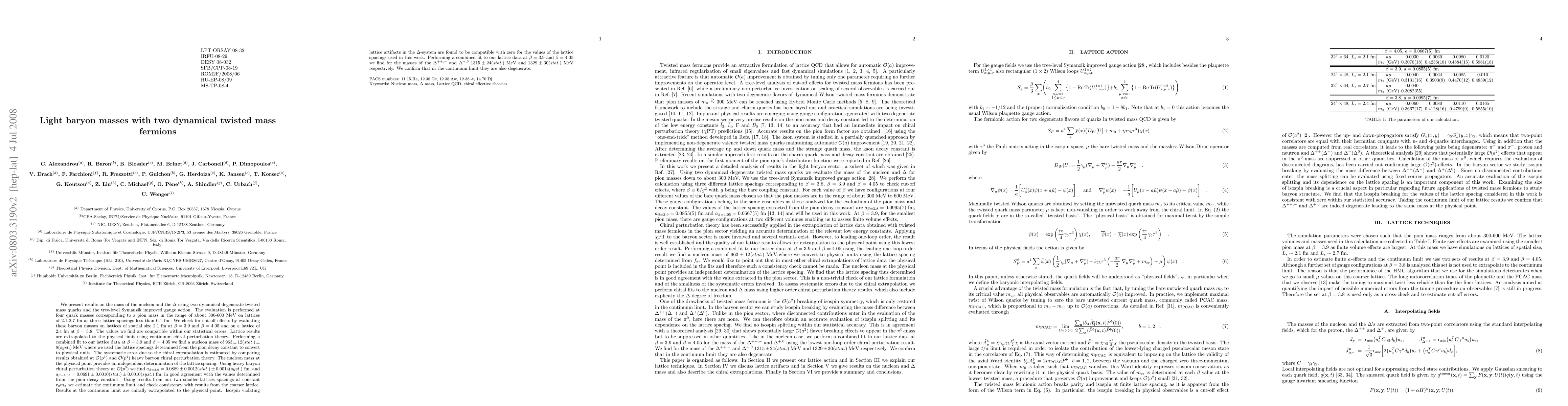 We present results on the mass of the nucleon and the Delta using two dynamical degenerate twisted mass quarks and the tree-level Symanzik improved gauge action. The evaluation is performed at four quark masses corresponding to a pion mass in the range of about 300-600 MeV on lattices of 2.1-2.7 fm. We check for cut-off effects by evaluating these baryon masses on lattices of spatial size 2.1 fm at beta=3.9 and beta=4.05 and on a lattice of 2.4 fm at beta=3.8. The values we find are compatible within our statistical errors. Lattice results are extrapolated to the physical limit using continuum chiral perturbation theory. Performing a combined fit to our lattice data at beta=3.9 and beta=4.05 we find a nucleon mass of 964\pm 28 (stat.) \pm 8 (syst.) MeV. The nucleon mass at the physical point provides an independent determination of the lattice spacing. Using heavy baryon chiral perturbation theory at O(p^3) we find a_{\beta=3.9}=0.0890\pm 0.0039(stat.) \pm 0.0014(syst.) fm, and a_{\beta=4.05}= 0.0691\pm 0.0034(stat.) \pm 0.0010(syst.) fm, in good agreement with the values determined from the pion decay constant. Isospin violating lattice artifacts in the Delta-system are found to be compatible with zero for the values of the lattice spacings used in this work. Performing a combined fit to our lattice data at beta=3.9 and beta=4.05 we find for the masses of the Delta^{++,-} and Delta^{+,0} 1316 \pm 60 (stat.) MeV and 1330 \pm 74 (stat.) MeV respectively. We confirm that in the continuum limit they are also degenerate.