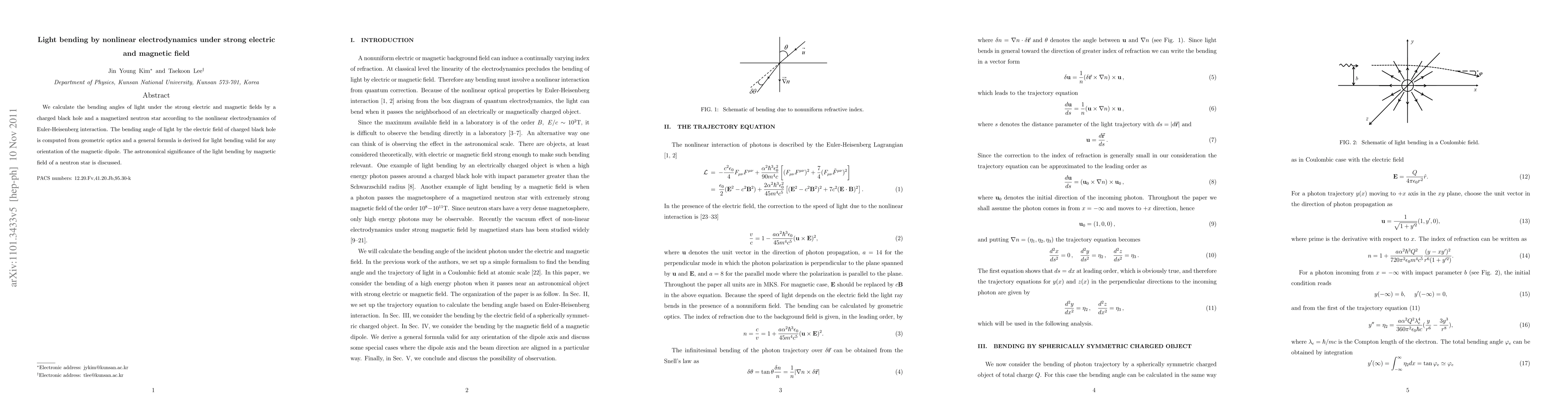 This paper calculates the bending angles of light influenced by strong electric and magnetic fields around a charged black hole and a magnetized neutron star, using nonlinear electrodynamics. It derives a general formula for light bending applicable to any magnetic dipole orientation and discusses the astronomical implications of light bending by a neutron star's magnetic field.