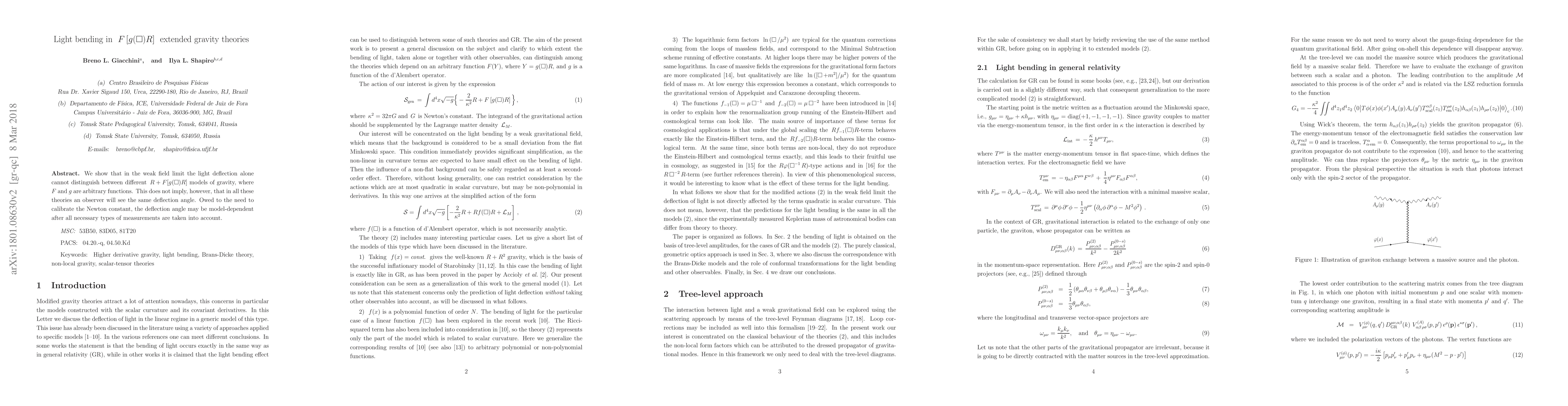 We show that in the weak field limit the light deflection alone cannot distinguish between different $R + F[g(\square)R]$ models of gravity, where $F$ and $g$ are arbitrary functions. This does not imply, however, that in all these theories an observer will see the same deflection angle. Owed to the need to calibrate the Newton constant, the deflection angle may be model-dependent after all necessary types of measurements are taken into account.