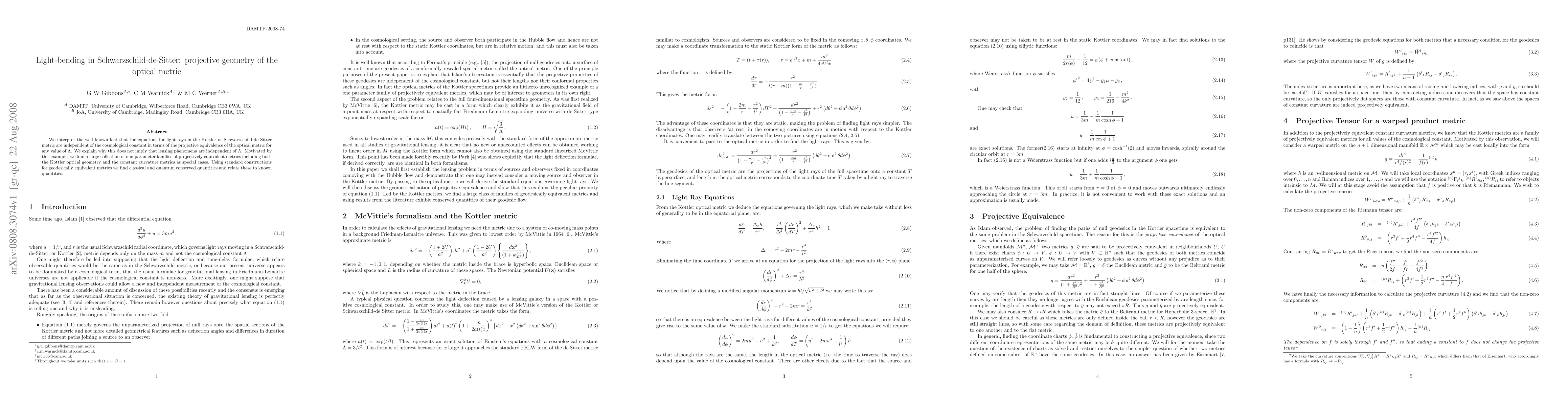 We interpret the well known fact that the equations for light rays in the Kottler or Schwarzschild-de Sitter metric are independent of the cosmological constant in terms of the projective equivalence of the optical metric for any value of \Lambda. We explain why this does not imply that lensing phenomena are independent of \Lambda. Motivated by this example, we find a large collection of one-parameter families of projectively equivalent metrics including both the Kottler optical geometry and the constant curvature metrics as special cases. Using standard constructions for geodesically equivalent metrics we find classical and quantum conserved quantities and relate these to known quantities.