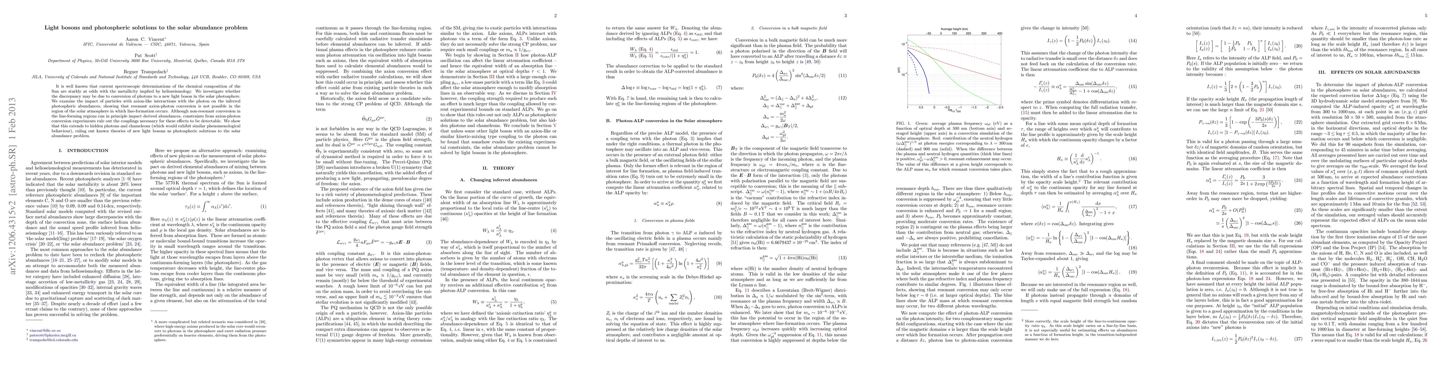 It is well known that current spectroscopic determinations of the chemical composition of the Sun are starkly at odds with the metallicity implied by helioseismology. We investigate whether the discrepancy may be due to conversion of photons to a new light boson in the solar photosphere. We examine the impact of particles with axion-like interactions with the photon on the inferred photospheric abundances, showing that resonant axion-photon conversion is not possible in the region of the solar atmosphere in which line-formation occurs. Although non-resonant conversion in the line-forming regions can in principle impact derived abundances, constraints from axion-photon conversion experiments rule out the couplings necessary for these effects to be detectable. We show that this extends to hidden photons and chameleons (which would exhibit similar phenomenological behaviour), ruling out known theories of new light bosons as photospheric solutions to the solar abundance problem.