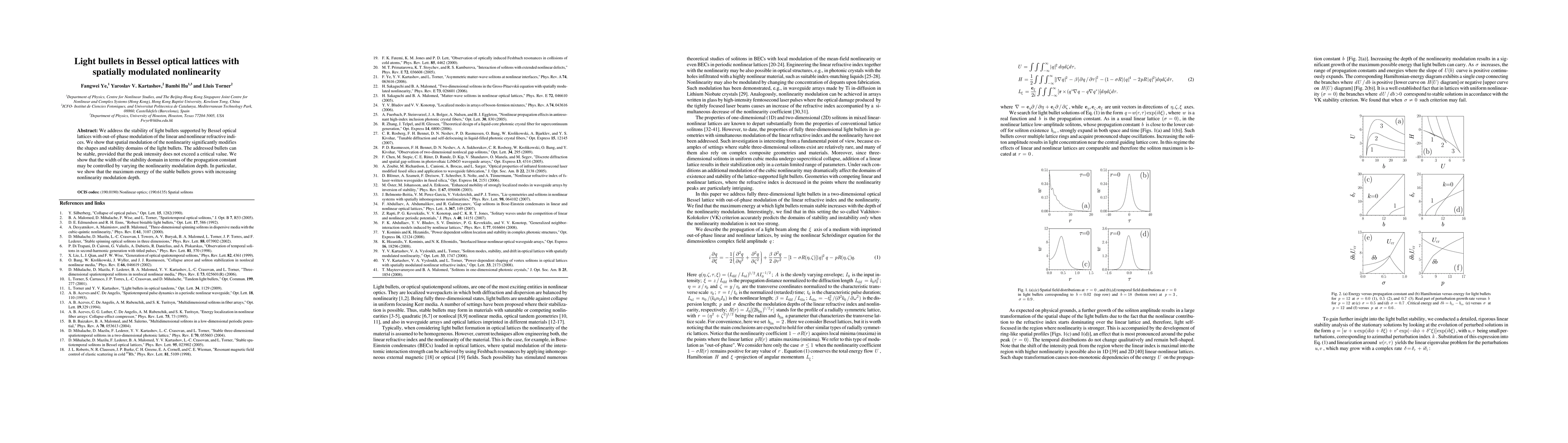 This paper investigates the stability of light bullets in Bessel optical lattices with spatially modulated nonlinearity. It finds that modulating the nonlinearity can significantly alter the shapes and stability of the light bullets, with stability dependent on peak intensity and propagation constant, and the maximum energy of stable bullets increasing with modulation depth.