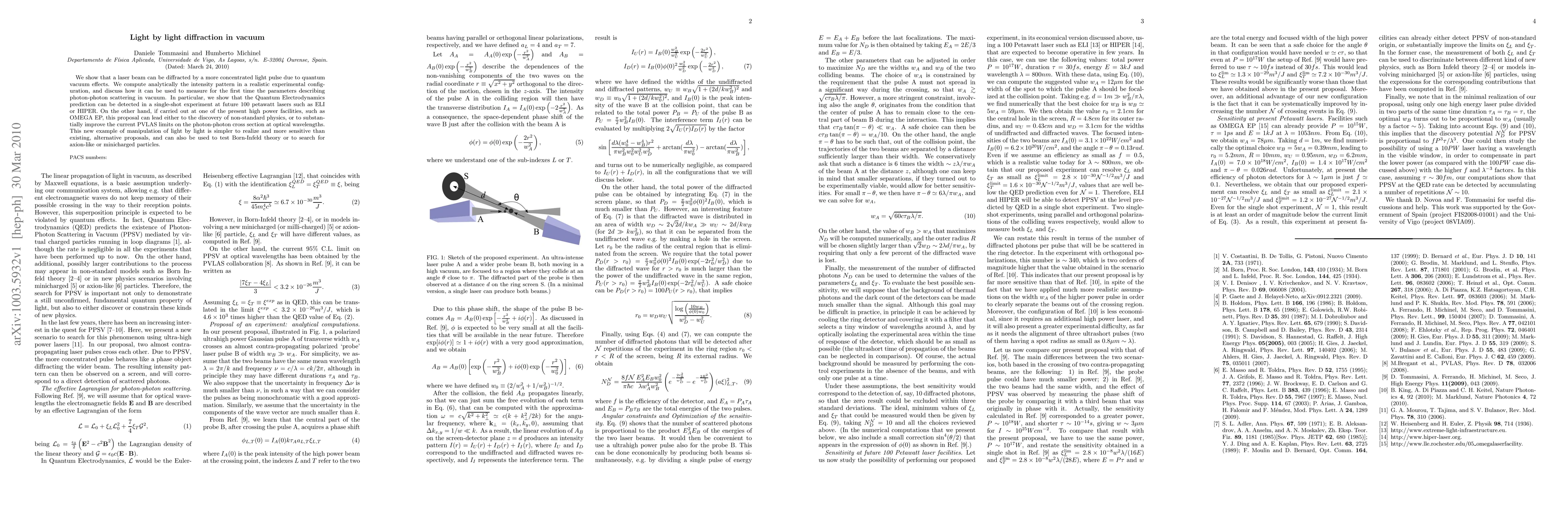 This paper demonstrates that a laser beam can be diffracted by a more intense light pulse through quantum vacuum effects, enabling a novel method to measure photon-photon scattering in vacuum. The study suggests that this technique could be implemented at future high-power laser facilities to either detect Quantum Electrodynamics predictions or reveal new physics.