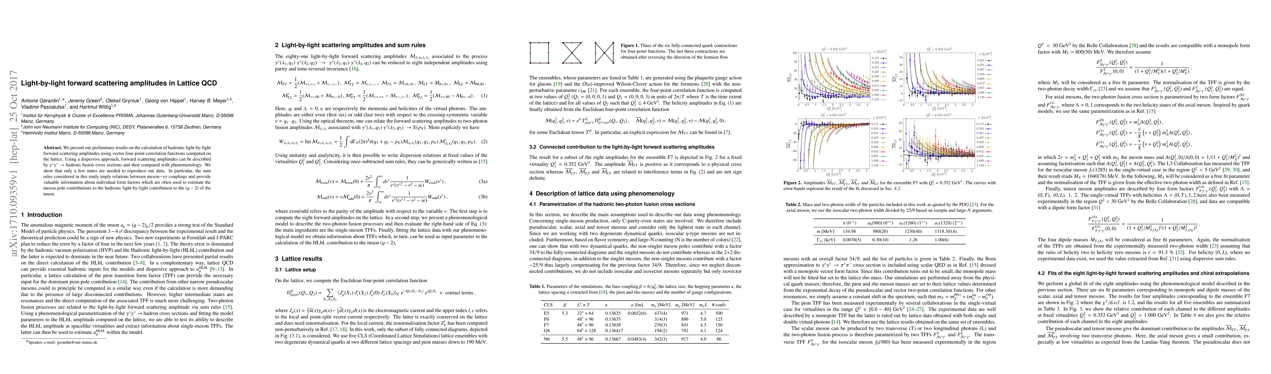 This research calculates hadronic light-by-light forward scattering amplitudes using lattice QCD and vector four-point correlation functions. The study reveals that only a few states are necessary to match the data, providing insights into meson-photon couplings and form factors relevant for estimating the muon's $(g-2)$ contribution.