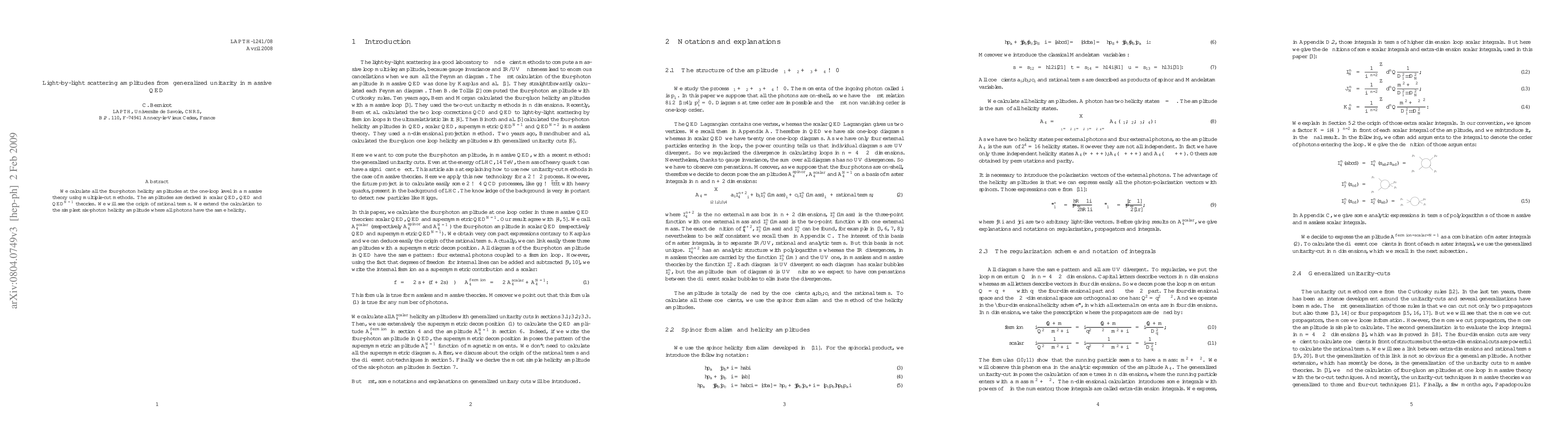 We calculate all the four-photon helicity amplitudes at the one-loop level in a massive theory using multiple-cut methods. The amplitudes are derived in scalar QED, QED and $\textrm{QED}^{\caln =1}$ theories. We will see the origin of rational terms. We extend the calculation to the simplest six-photon helicity amplitude where all photons have the same helicity.