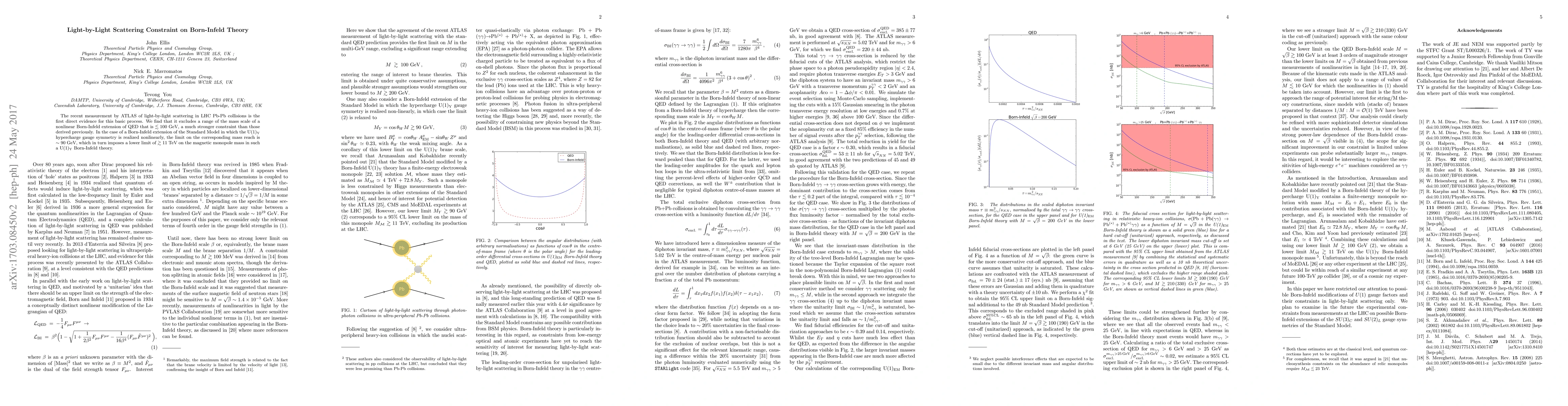The ATLAS experiment's observation of light-by-light scattering in LHC Pb-Pb collisions provides a stringent constraint on the mass scale of nonlinear Born-Infeld extensions of QED, requiring it to be $\gtrsim 100$~GeV, and similarly constrains the mass of magnetic monopoles in such theories to $\gtrsim 11$~TeV.