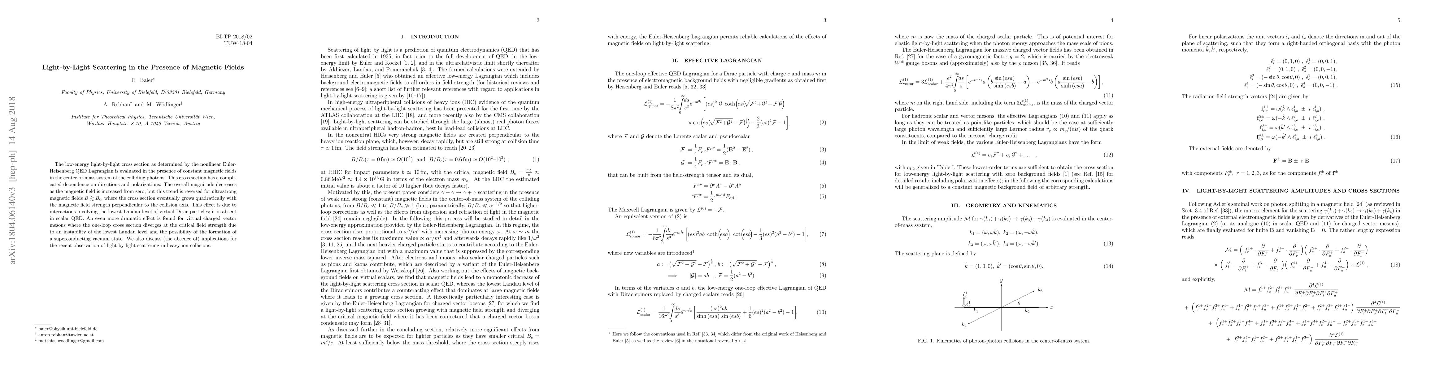 The presence of magnetic fields in photon collisions changes the light-by-light scattering cross section, with strong fields causing a quadratic increase in the magnitude or divergence for virtual charged vector mesons.
