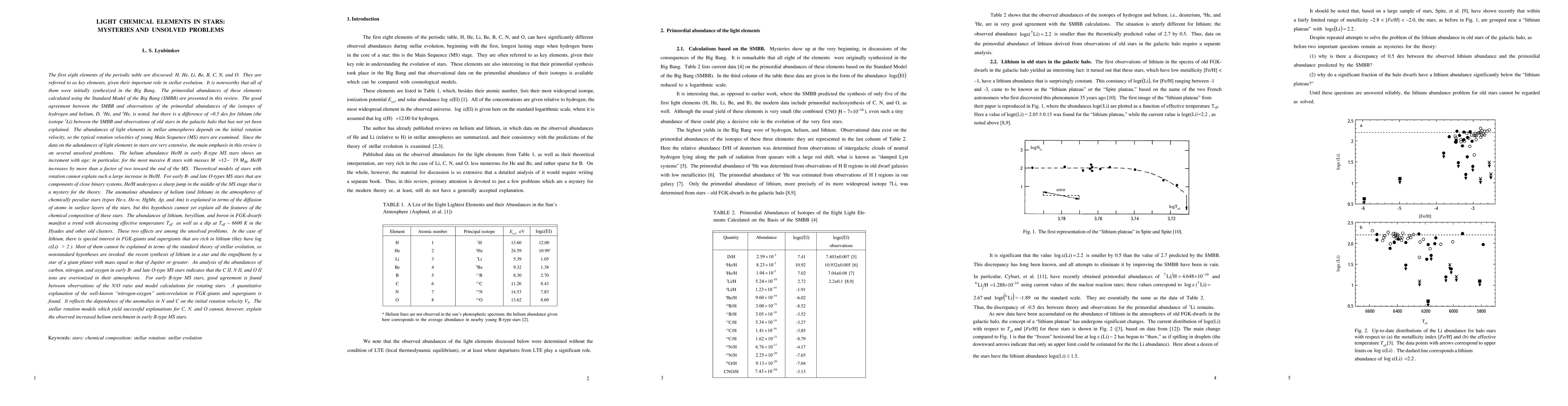 This paper reviews the primordial abundances of the first eight elements in stars, highlighting their crucial role in stellar evolution. While the Standard Model of the Big Bang accurately predicts hydrogen, helium, and deuterium abundances, it fails to explain the observed discrepancy in lithium abundance in old stars, posing an unresolved mystery.