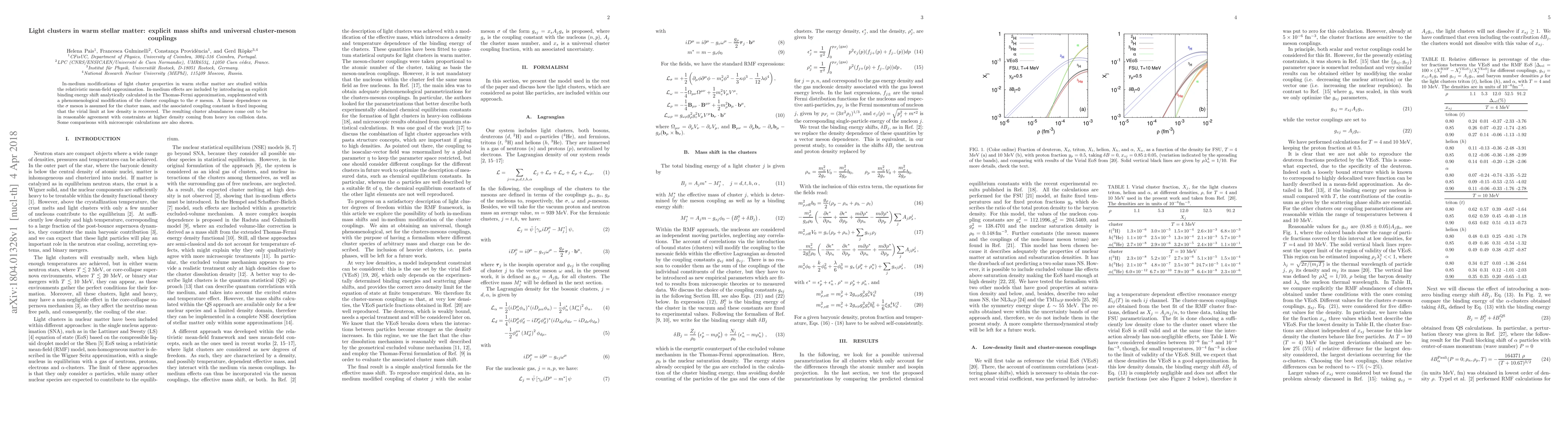 In-medium modifications of light cluster properties in warm stellar matter are studied within the relativistic mean-field approximation. In-medium effects are included by introducing an explicit binding energy shift analytically calculated in the Thomas-Fermi approximation, supplemented with a phenomenological modification of the cluster couplings to the $\sigma$ meson. A linear dependence on the $\sigma$ meson is assumed for the cluster mass, and the associated coupling constant is fixed imposing that the virial limit at low density is recovered. The resulting cluster abundances come out to be in reasonable agreement with constraints at higher density coming from heavy ion collision data. Some comparisons with microscopic calculations are also shown.