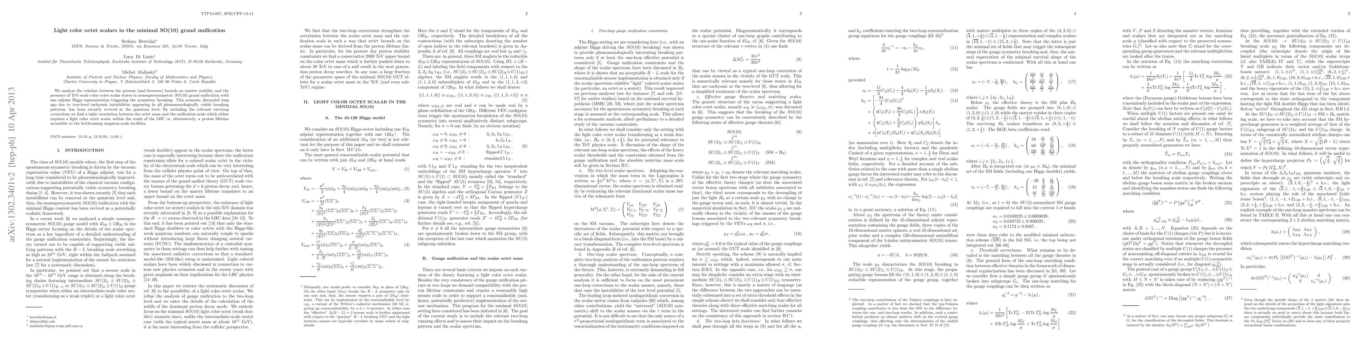 The study provides a novel analytical framework to analyze the relation between matter stability bounds and TeV-scale color octet scalar states in SO(10) grand unification.
