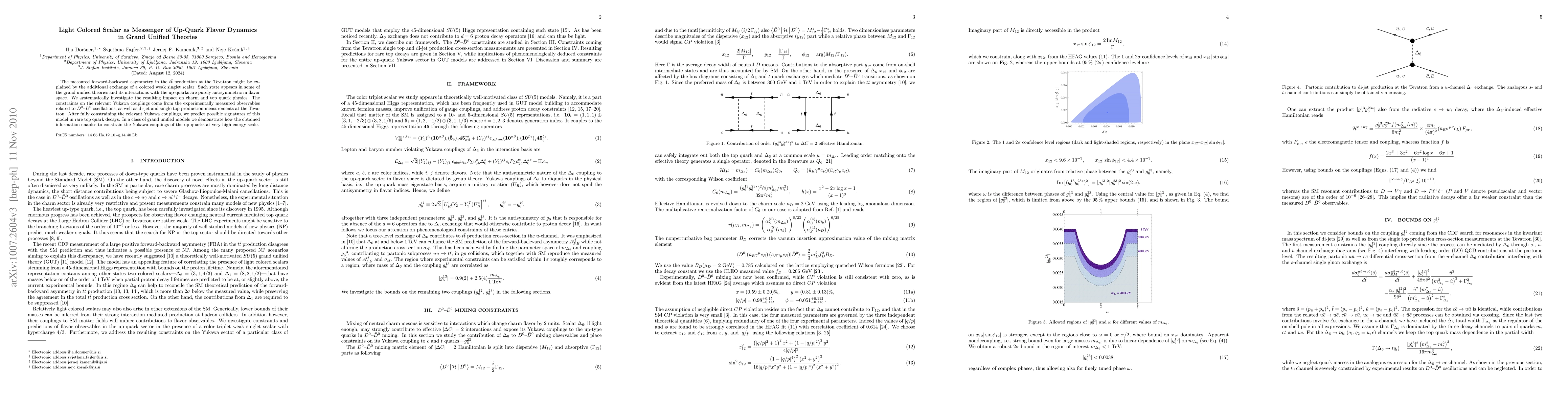 This paper explores a light colored scalar in grand unified theories that mediates up-quark flavor dynamics, potentially explaining the Tevatron's forward-backward asymmetry in t tbar production. It predicts signatures in charm and top quark physics, and uses experimental data to constrain Yukawa couplings, ultimately predicting rare top quark decay signatures.