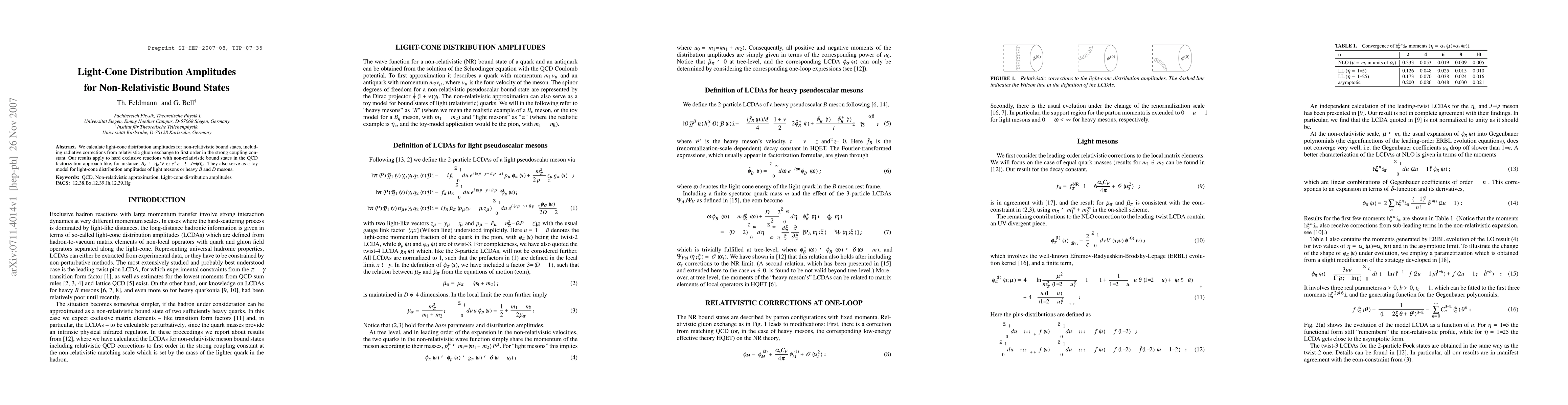 This paper calculates light-cone distribution amplitudes for non-relativistic bound states, incorporating first-order radiative corrections from relativistic gluon exchange. The findings are relevant for hard exclusive reactions in QCD factorization and serve as a model for similar calculations in light and heavy mesons.