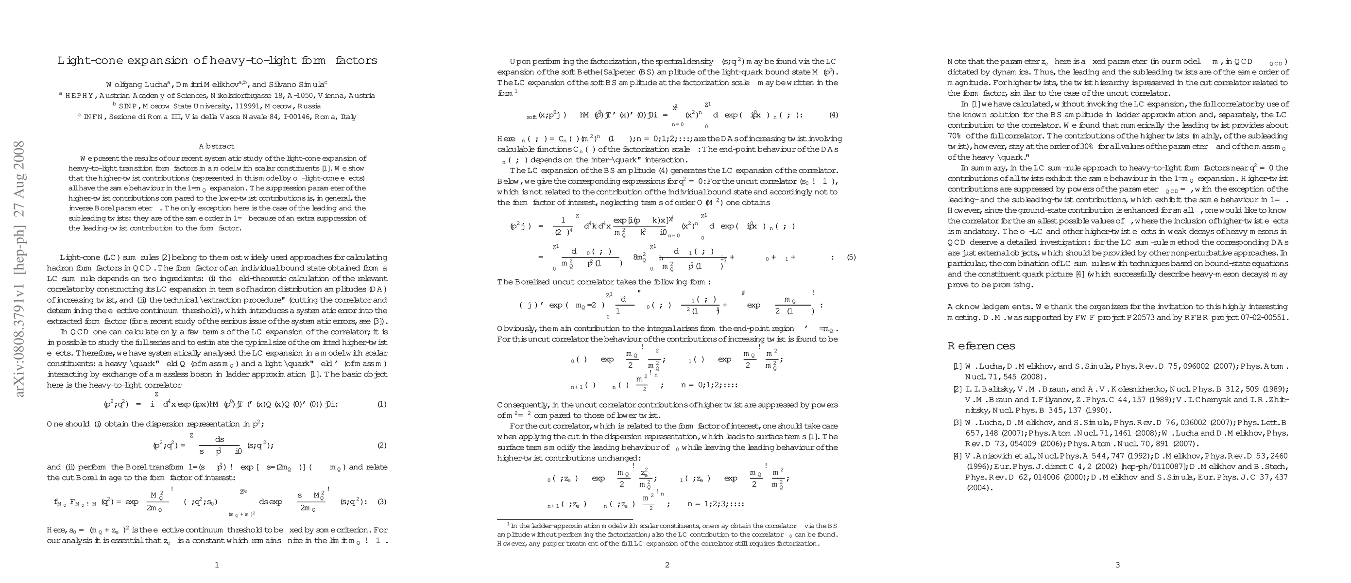 We present the results of our recent systematic study of the light-cone expansion of heavy-to-light transition form factors in a model with scalar constituents [1]. We show that the higher-twist contributions (represented in this model by off-light-cone effects) all have the same behaviour in the 1/m_Q expansion. The suppression parameter of the higher-twist contributions compared to the lower-twist contributions is, in general, the inverse Borel parameter \beta. The only exception here is the case of the leading and the subleading twists: they are of the same order in 1/\beta because of an extra suppression of the leading-twist contribution to the form factor.