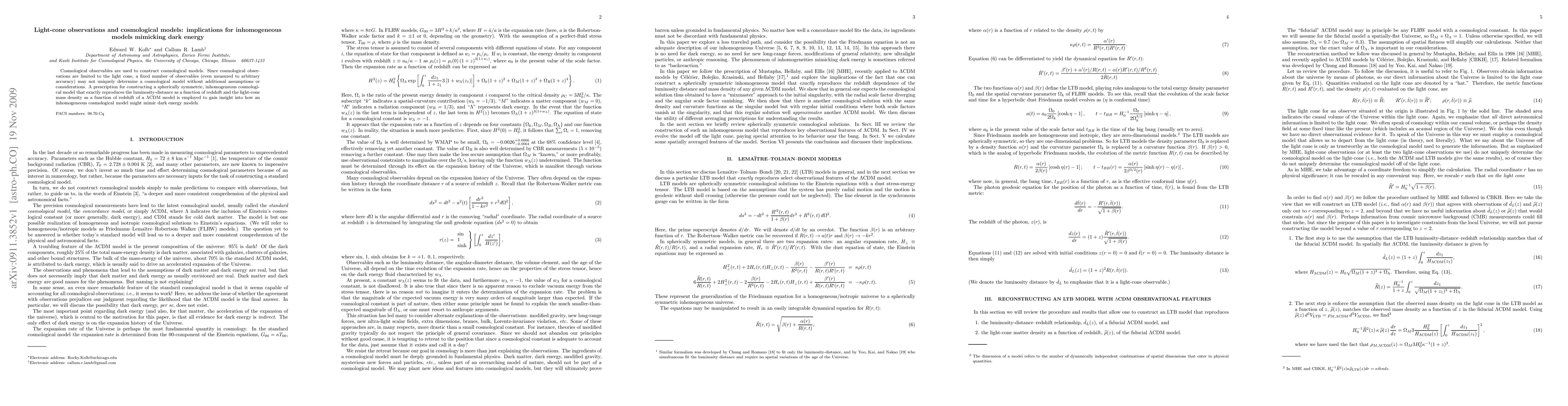 This paper explores how light-cone observations constrain cosmological models, particularly inhomogeneous models that mimic dark energy. It proposes a method to construct inhomogeneous models that replicate the luminosity-distance and light-cone mass density of a $\Lambda$CDM model, highlighting the complexities in determining unique cosmological models from limited observational data.