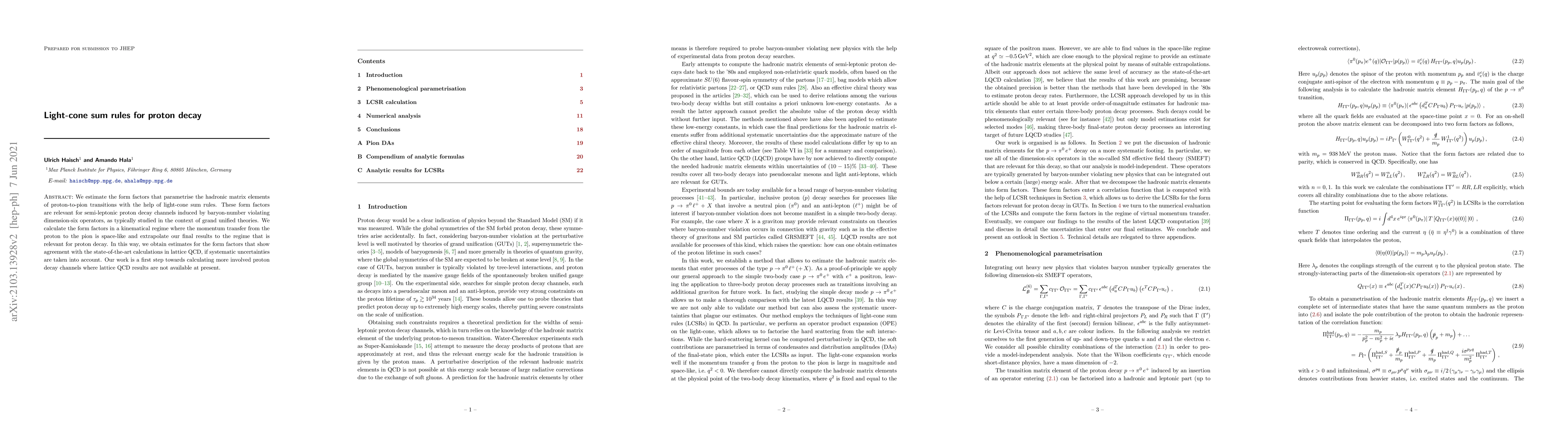 We estimate the form factors that parametrise the hadronic matrix elements of proton-to-pion transitions with the help of light-cone sum rules. These form factors are relevant for semi-leptonic proton decay channels induced by baryon-number violating dimension-six operators, as typically studied in the context of grand unified theories. We calculate the form factors in a kinematical regime where the momentum transfer from the proton to the pion is space-like and extrapolate our final results to the regime that is relevant for proton decay. In this way, we obtain estimates for the form factors that show agreement with the state-of-the-art calculations in lattice QCD, if systematic uncertainties are taken into account. Our work is a first step towards calculating more involved proton decay channels where lattice QCD results are not available at present.