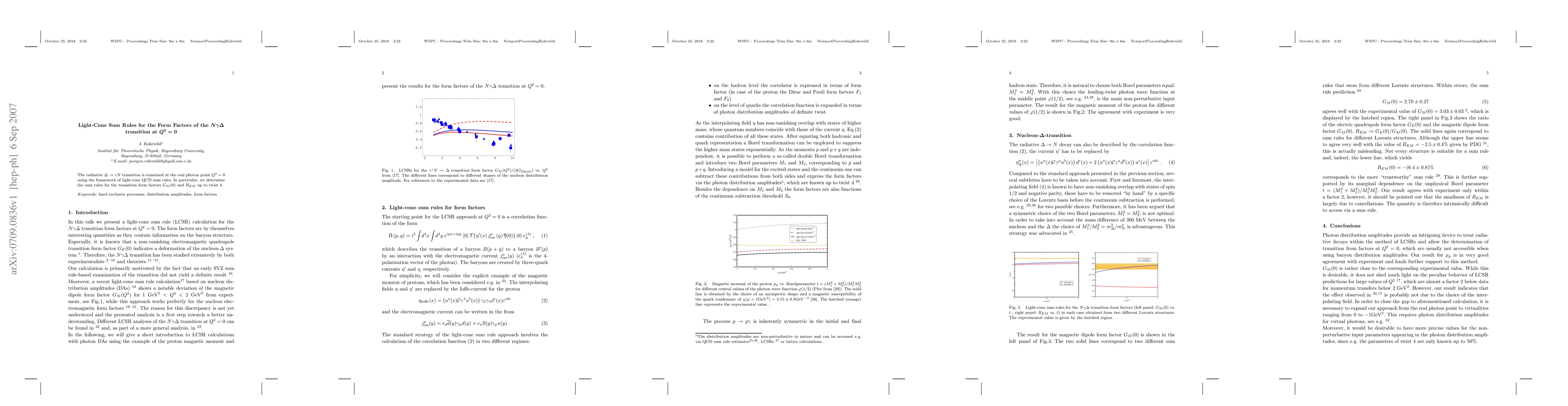 This paper investigates the radiative $\Delta \to \gamma N$ transition at $Q^2=0$ using light-cone QCD sum rules, determining sum rules for the transition form factors $G_M(0)$ and $R_{EM}$ up to twist 4. The study provides insights into the structure of the $N\gamma\Delta$ interaction at low momentum transfer.