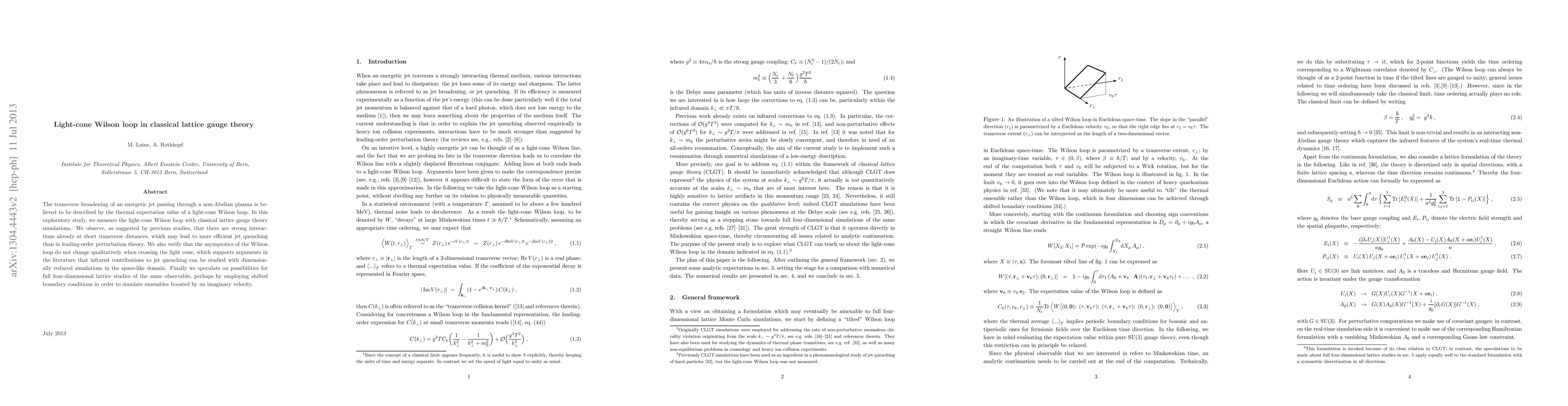 This study uses classical lattice gauge theory to measure the light-cone Wilson loop, finding strong interactions at short distances that suggest efficient jet quenching. It confirms that the Wilson loop's asymptotics remain consistent across the light cone, supporting the use of reduced-dimensional simulations for infrared contributions.