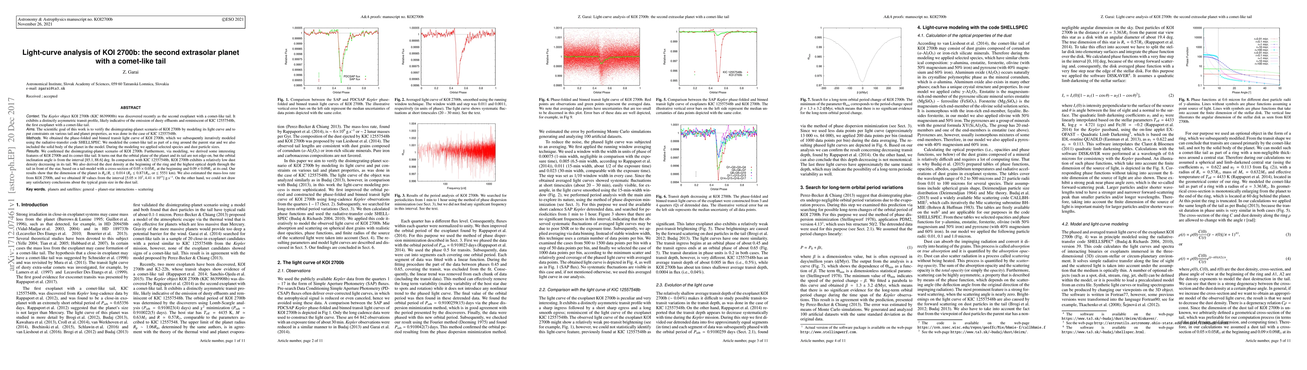 This paper analyzes the light curve of KOI 2700b, the second known exoplanet with a comet-like tail, to confirm its disintegrating-planet scenario and derive properties of its tail. The study models the asymmetric transit profile using SHELLSPEC, confirming the presence of dusty effluents and providing insights into the tail's characteristics.